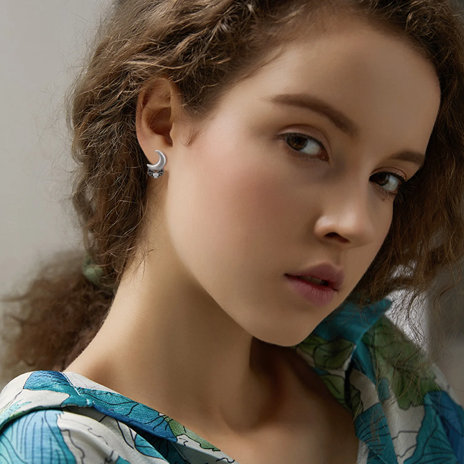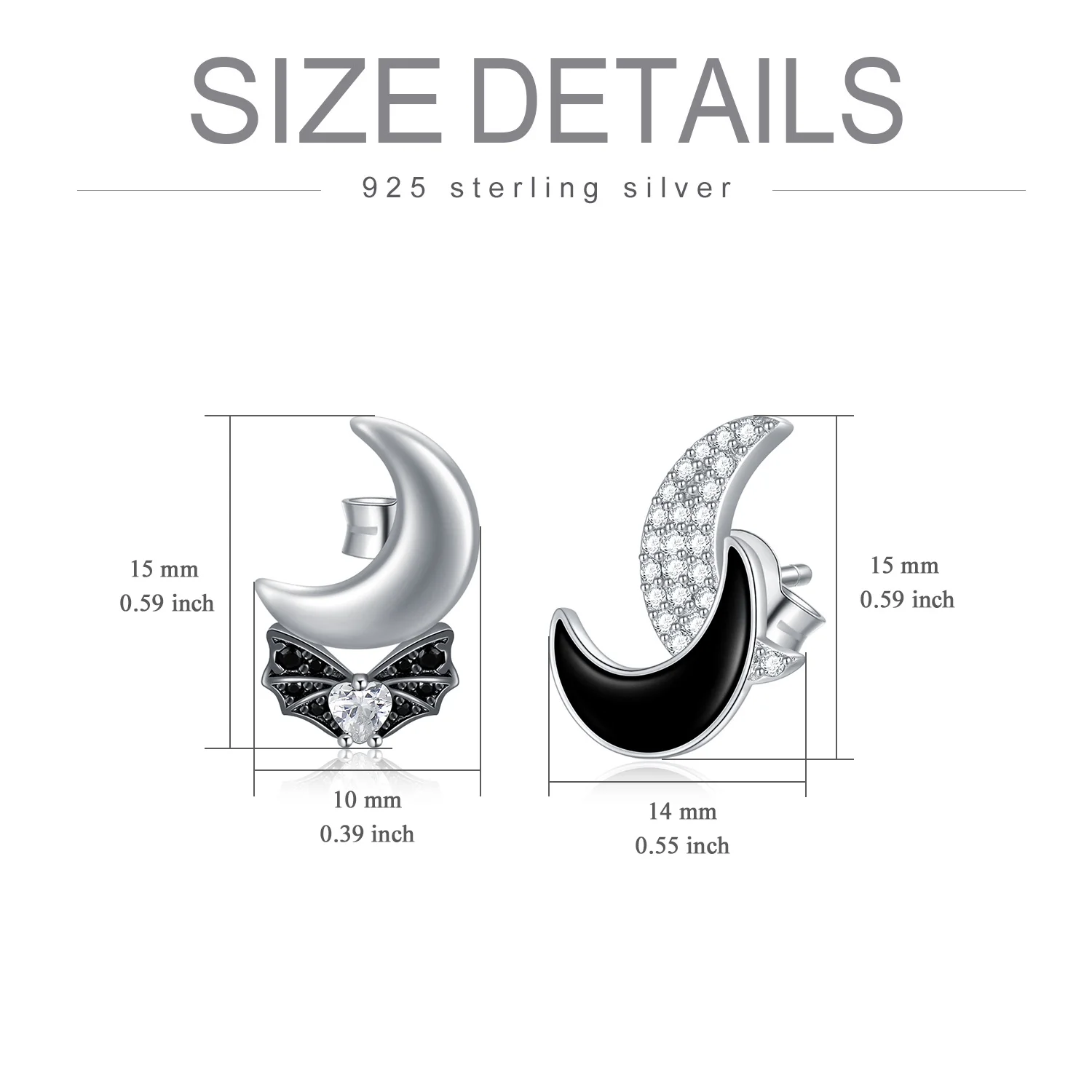 Wholesale High Quality 925 Sterling Silver Moon Bat Cube Zircon Stud Earrings For Women