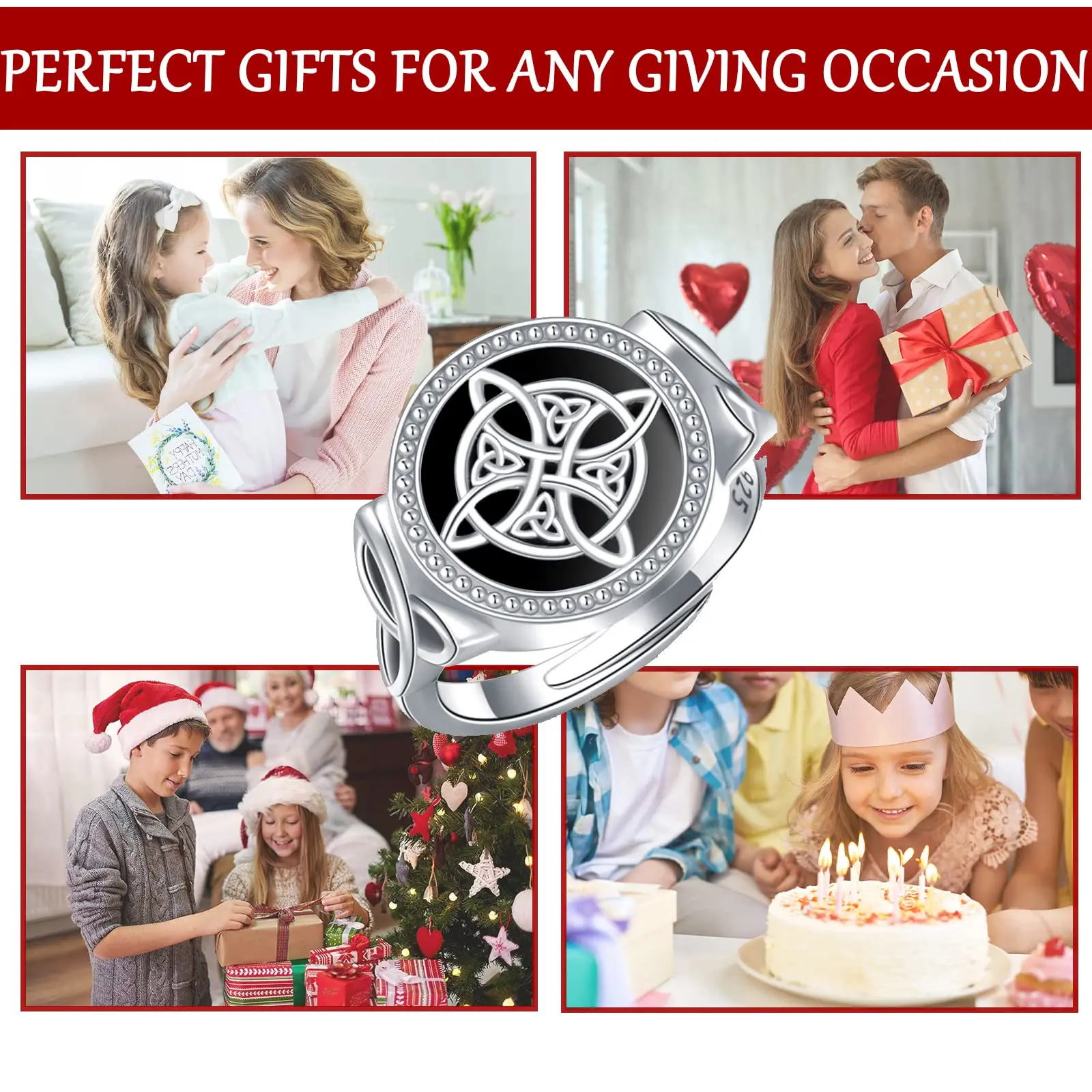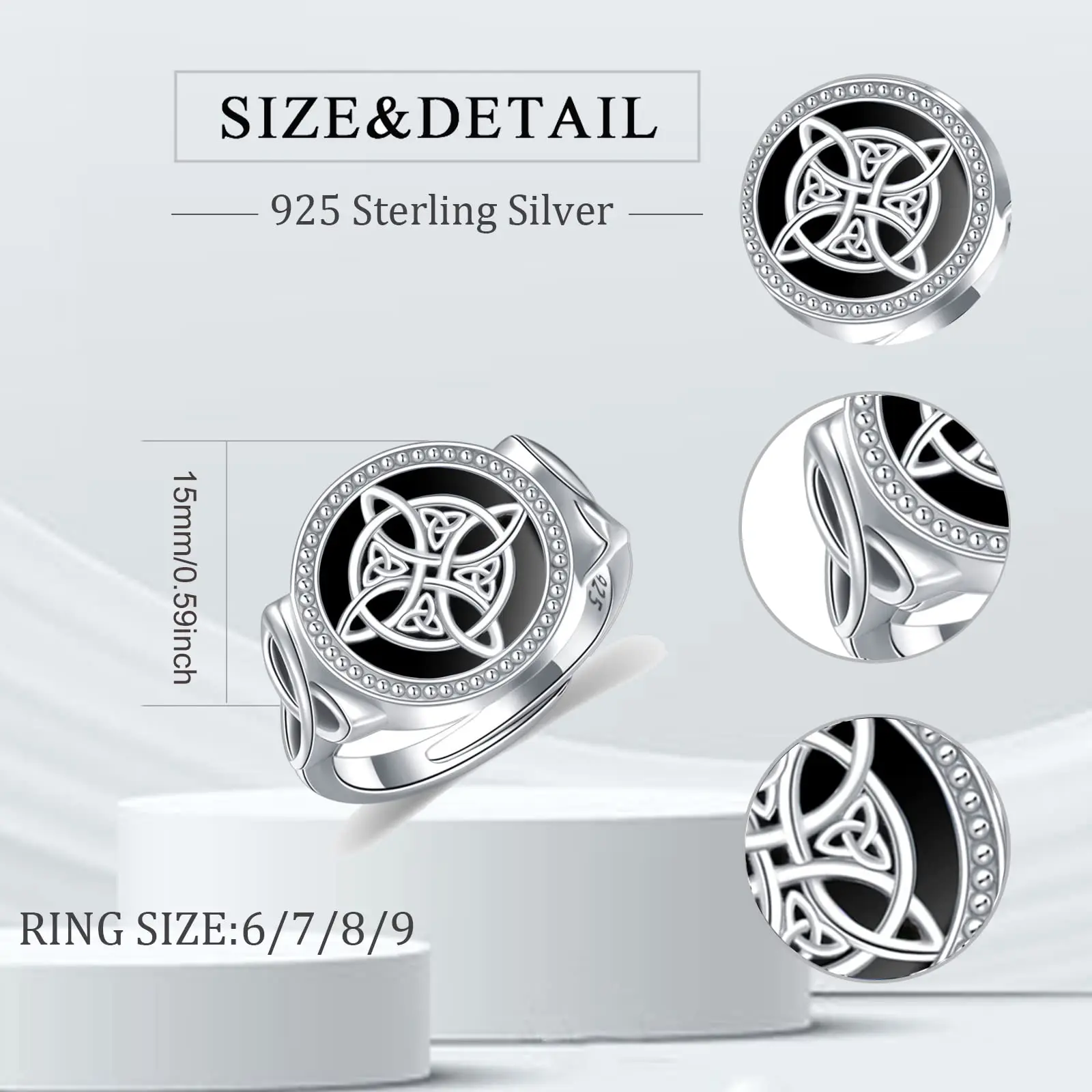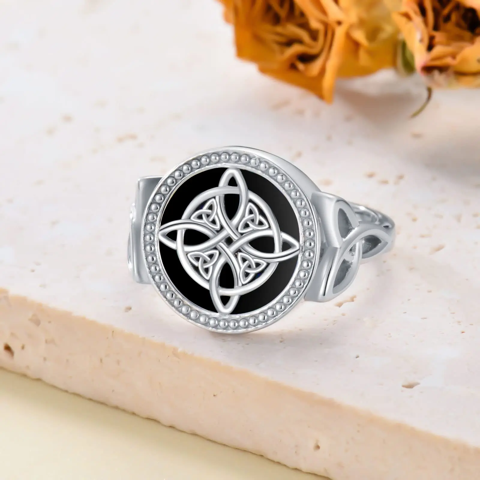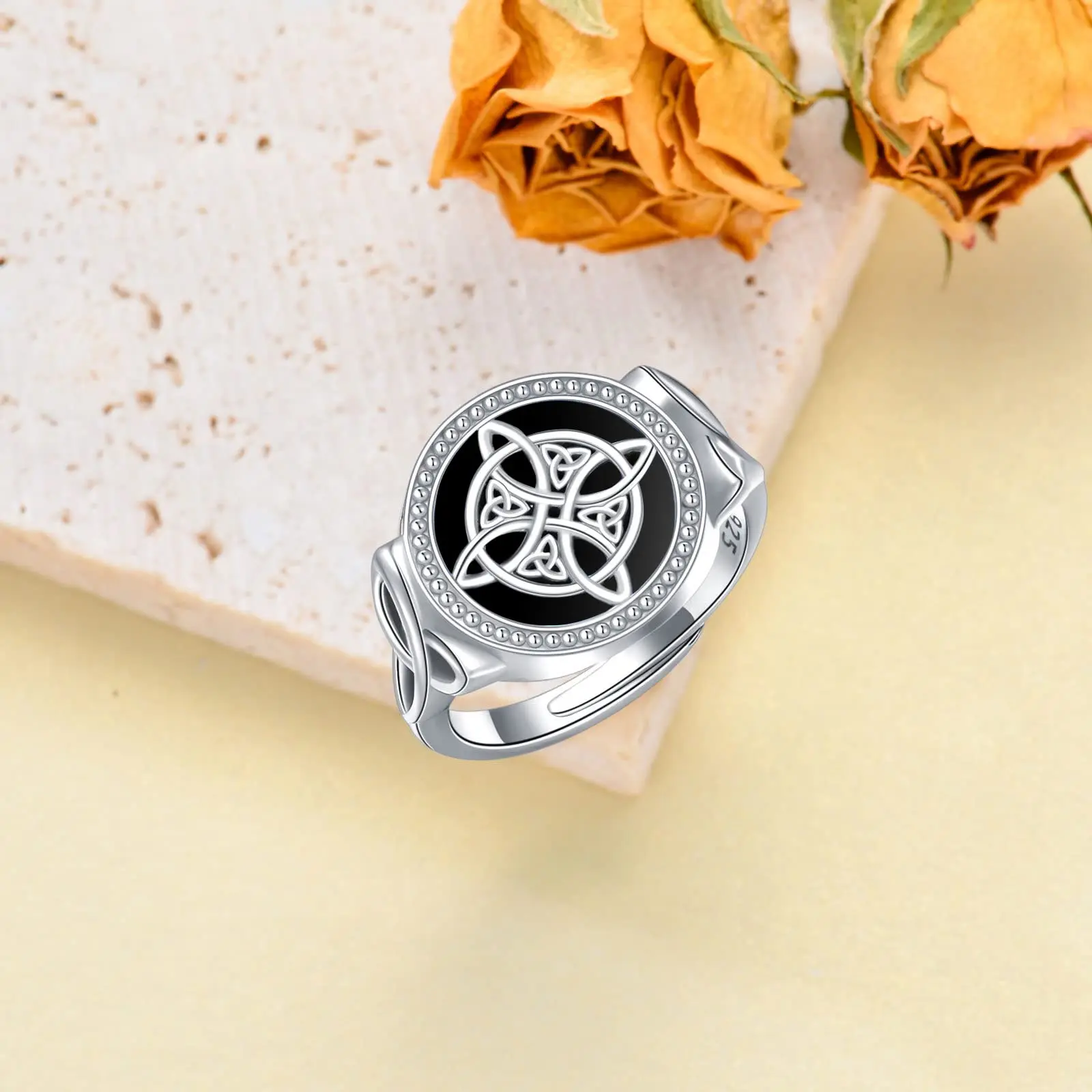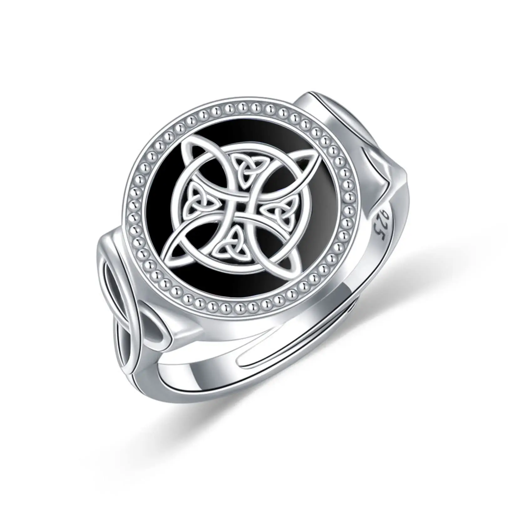 YFN Jewelry 925 Sterling Silver Black Turquoise Celtic irish witch Knot Ring