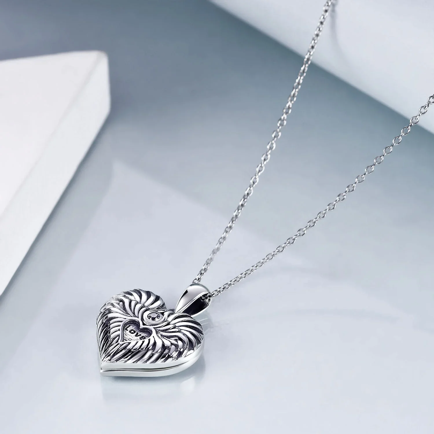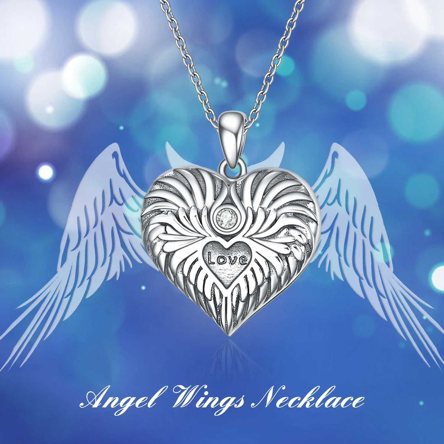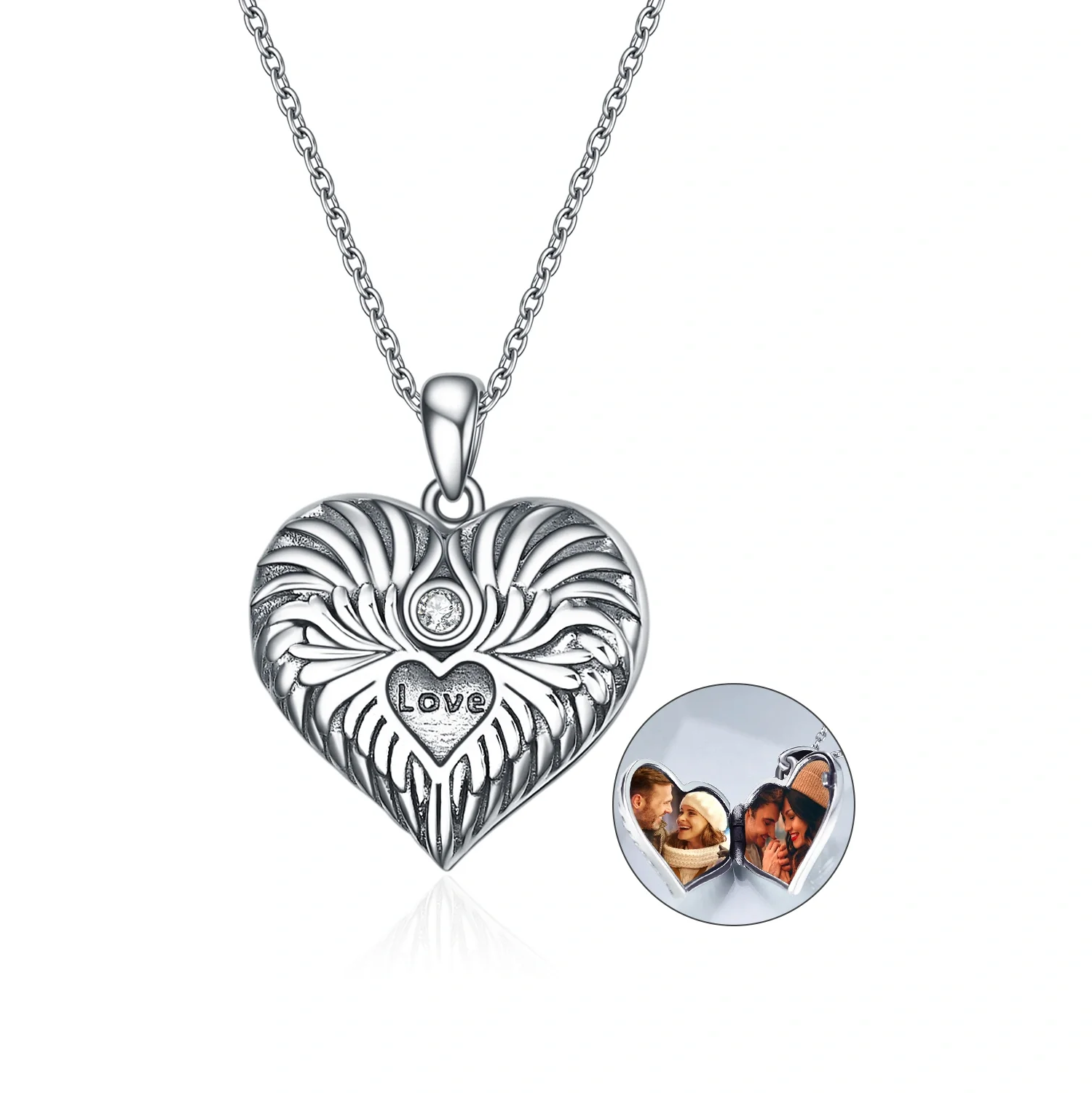 YFN Jewelry 925 Sterling Silver Cubic Zircon Angel Wings Heart Photo Locket Necklace