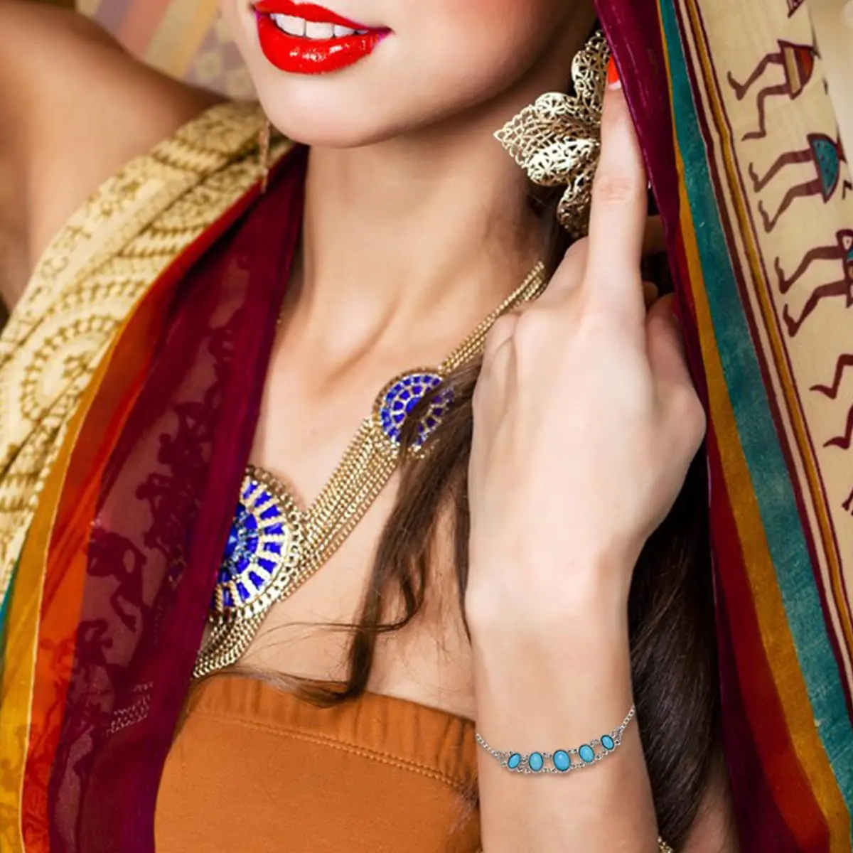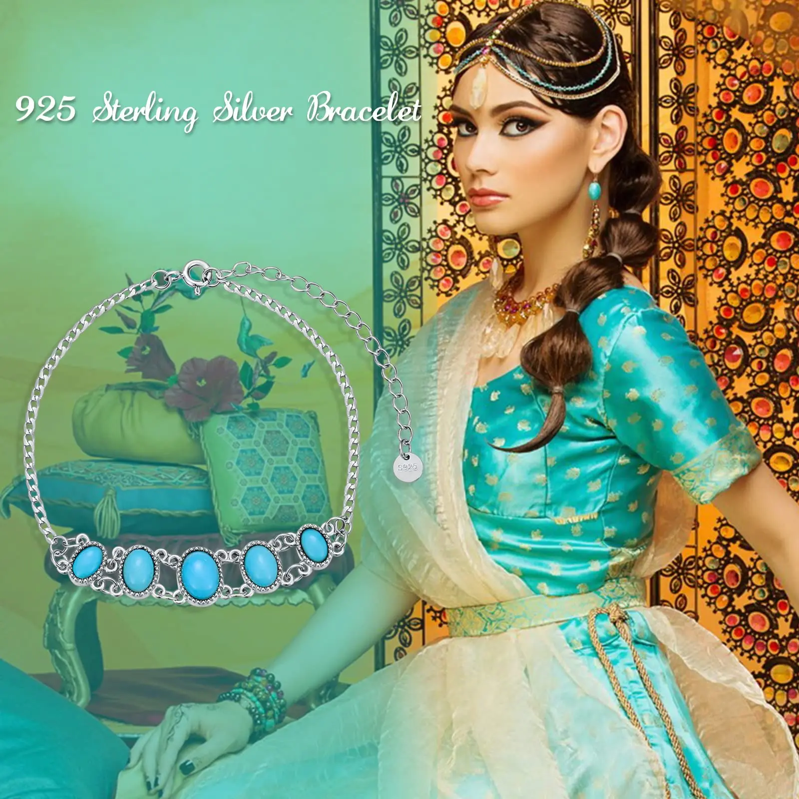 YFN 925 Sterling Silver Western Vintage blue Turquoise Gemstone Bracelet Jewelry