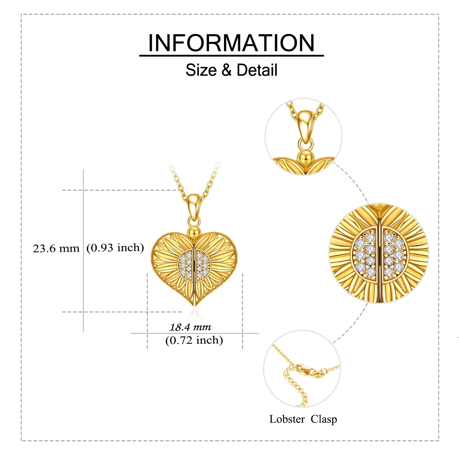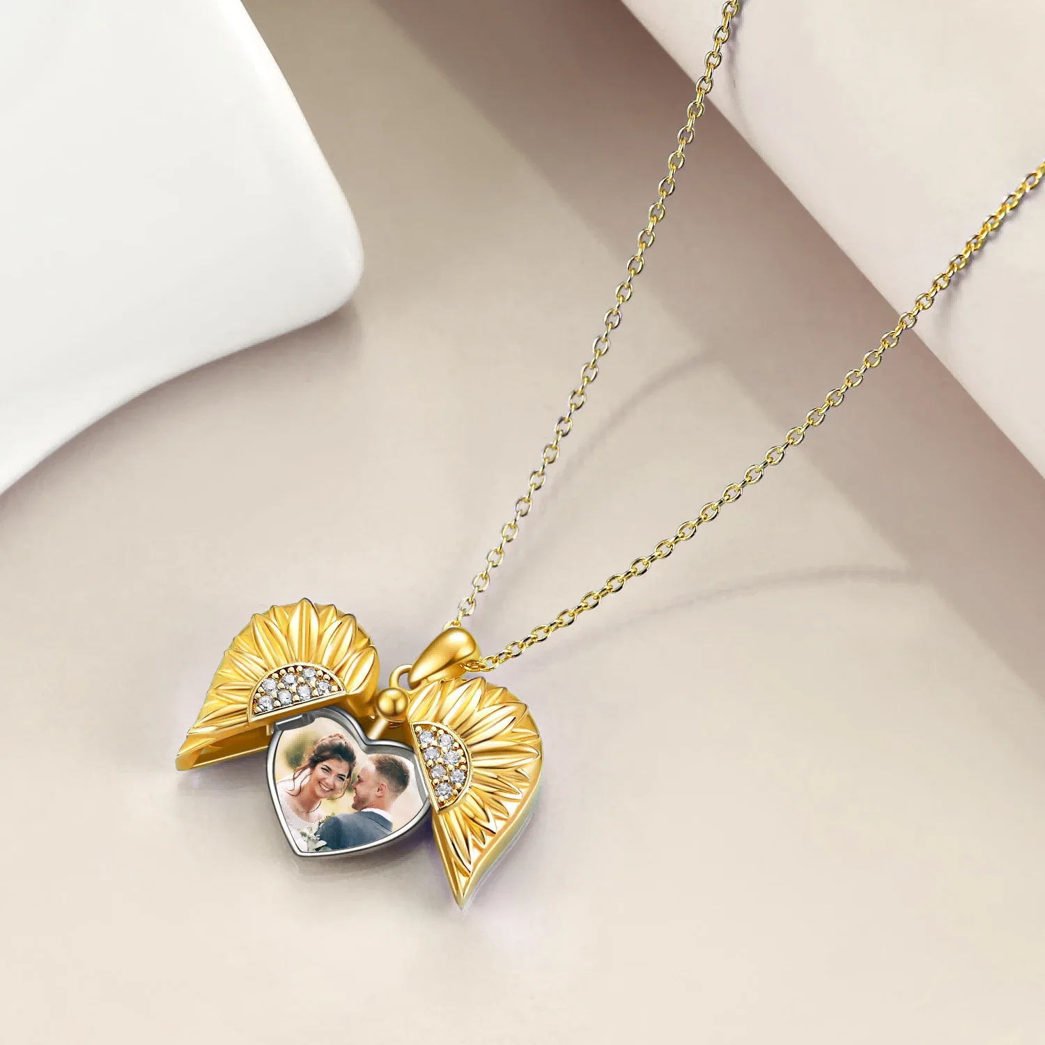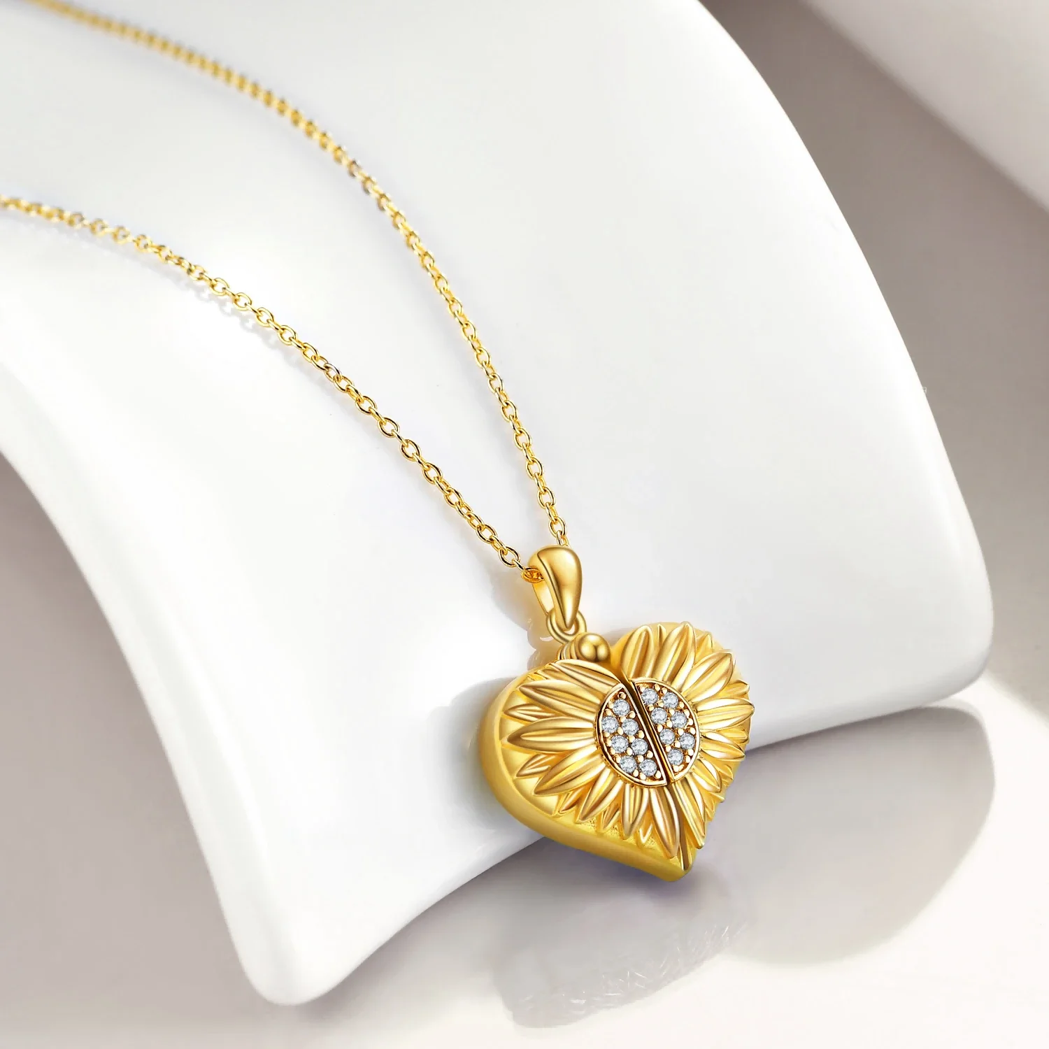Fine Jewelry 925 Sterling Silver Gold Plated Zircon Setting Sunflower Heart Locket Necklace