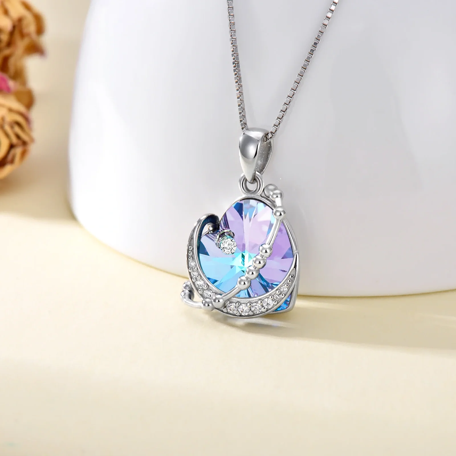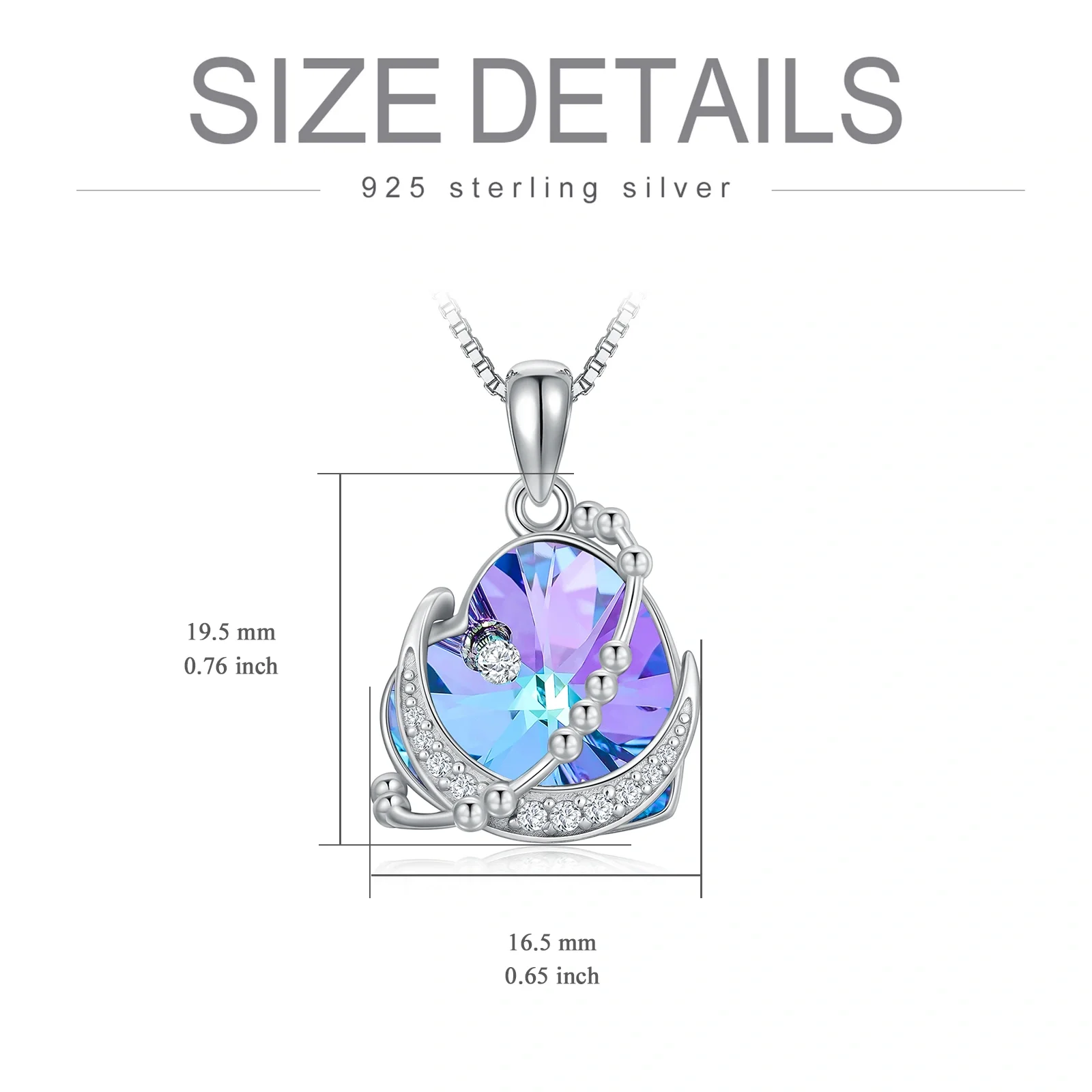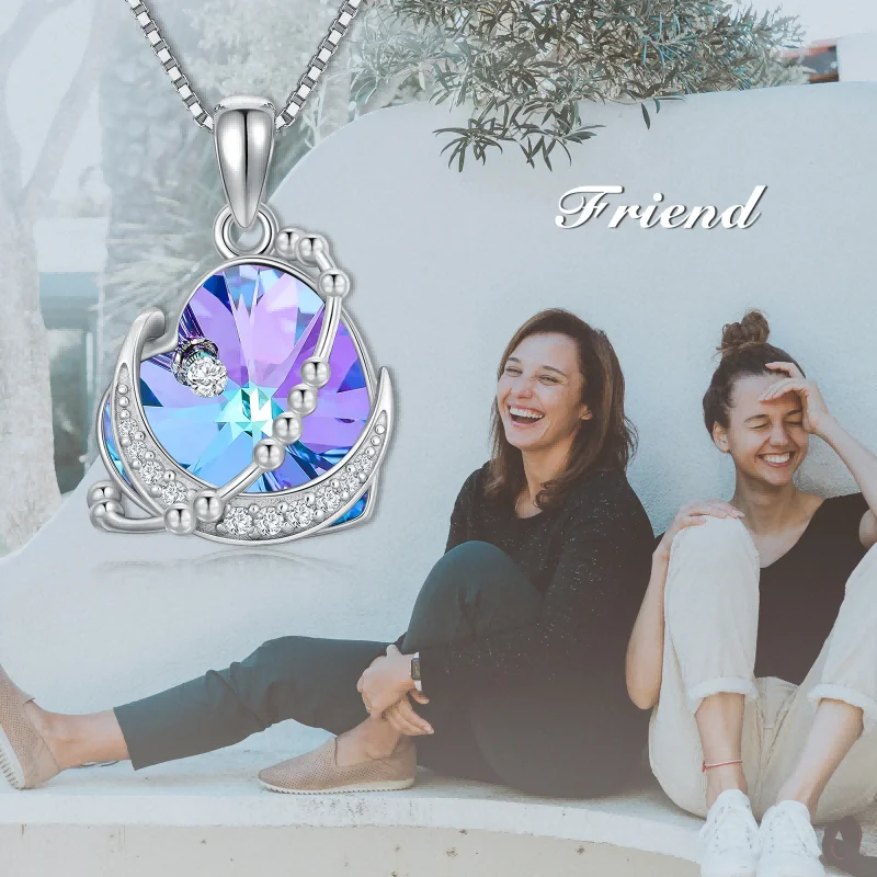 Hot Sale 925 Sterling Silver 18+2inch Box Chain Best Friend Crystal Heart Crescent Moon Necklace