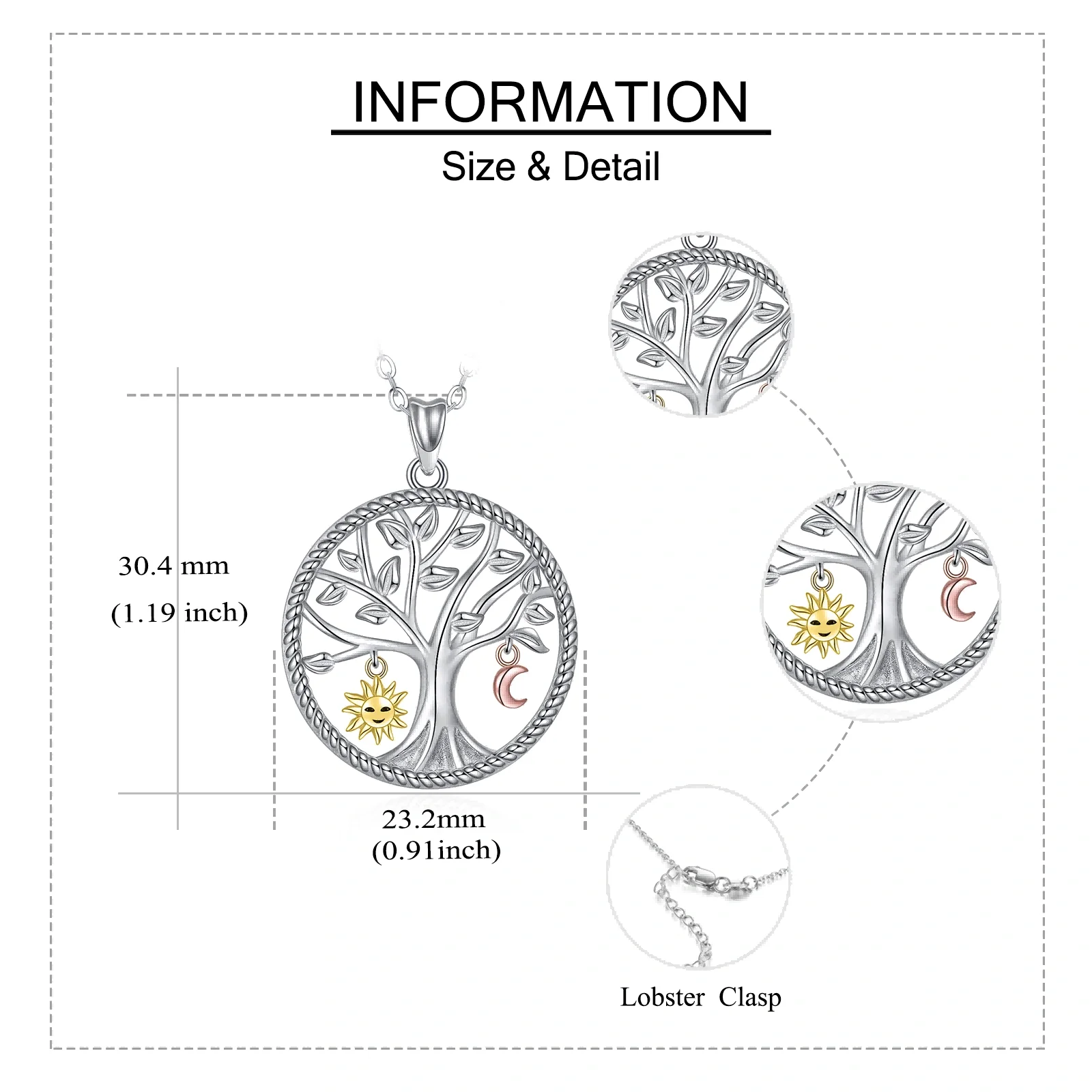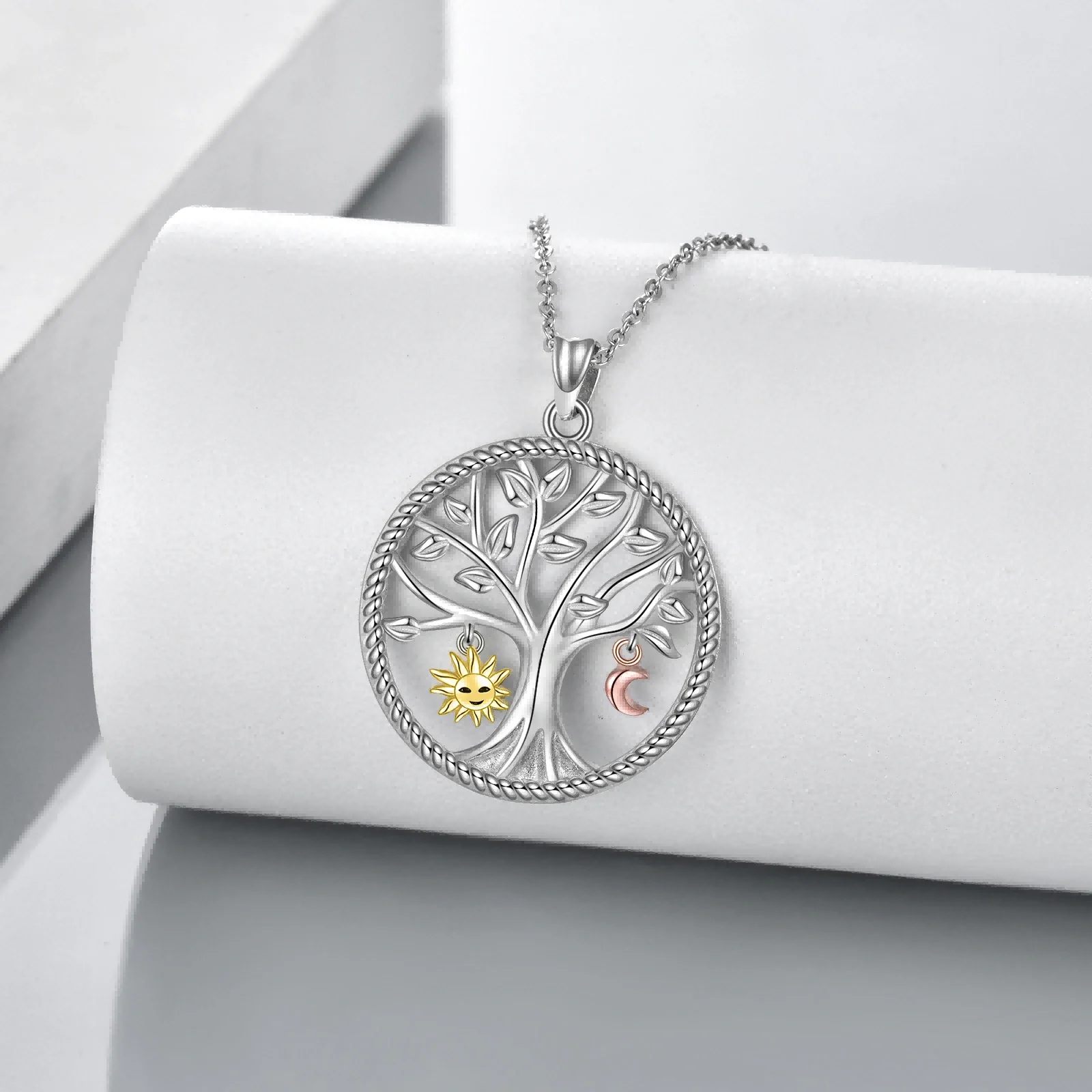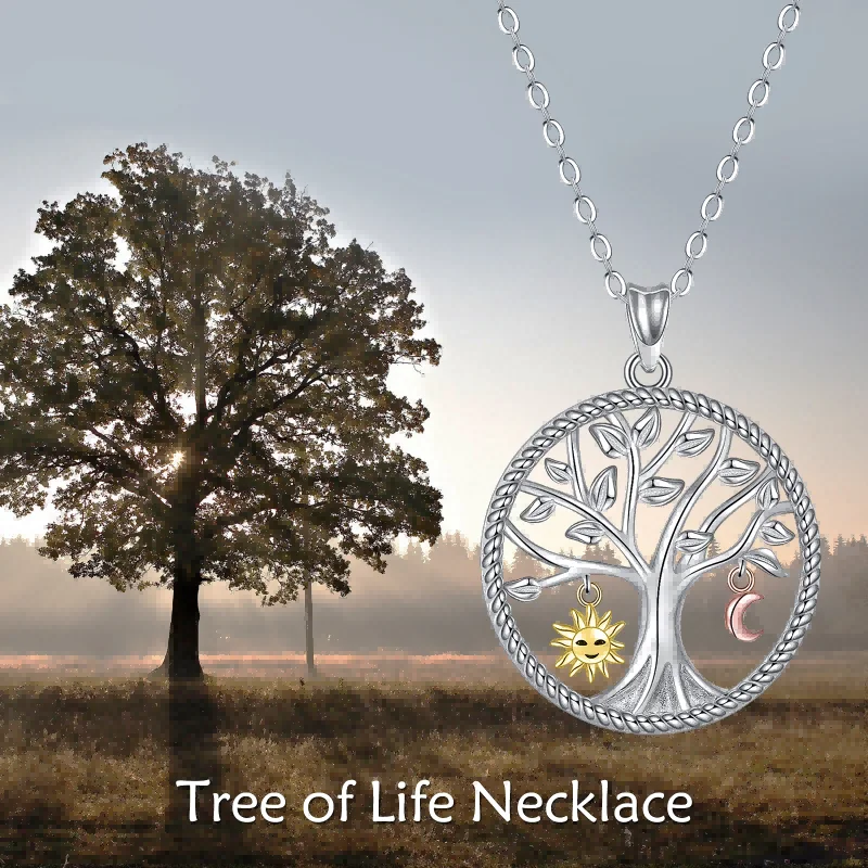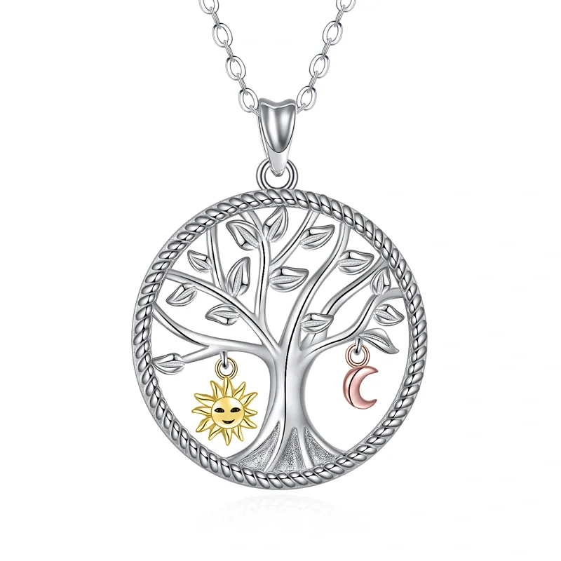 Hot Sale High Quality 925 Sterling Silver Two Tone Tree Of Life Sun And Moon Necklace