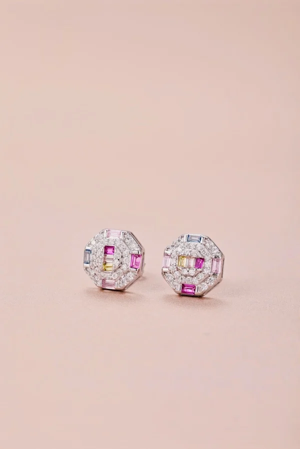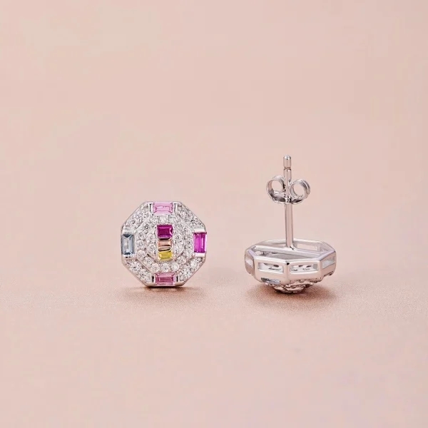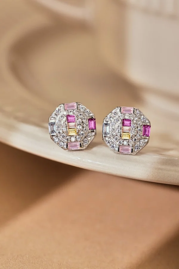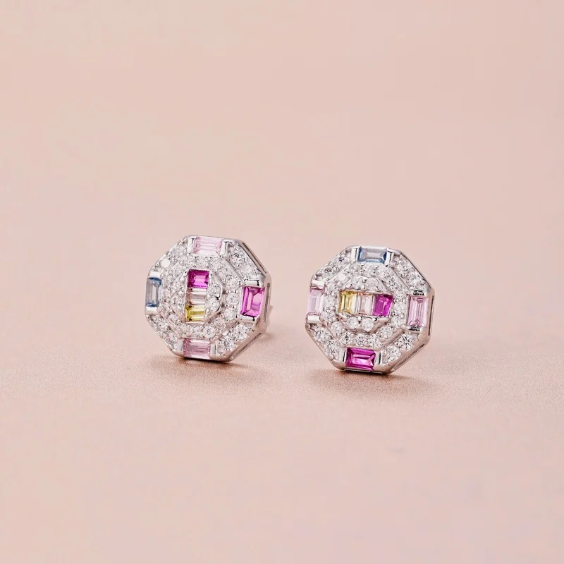 Fine Jewelry 925 Sterling Silver Rainbow Baguette Colorful Cube Zircon Stud Earrings For Women
