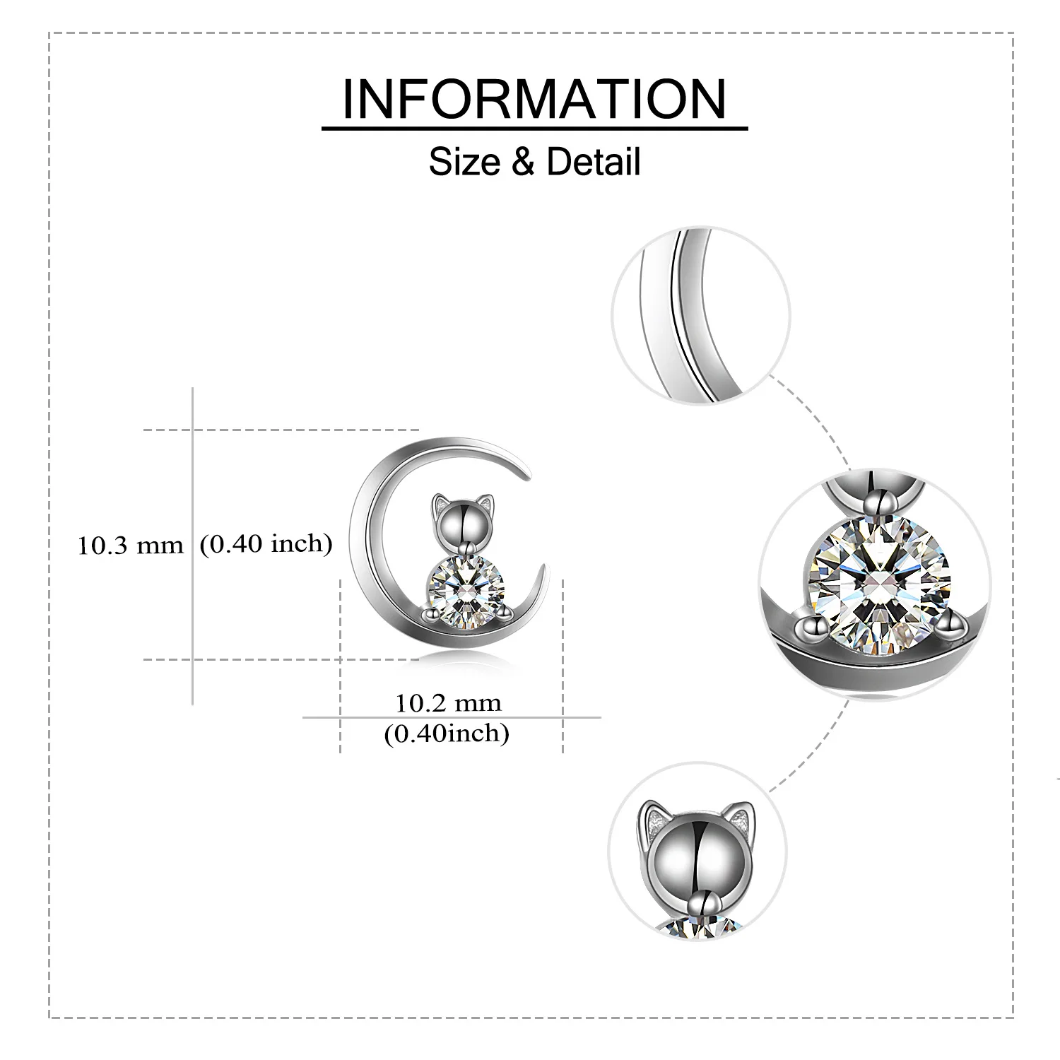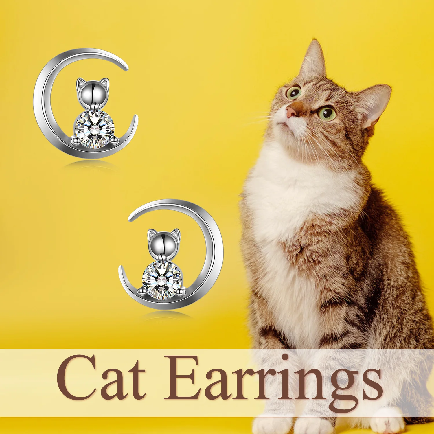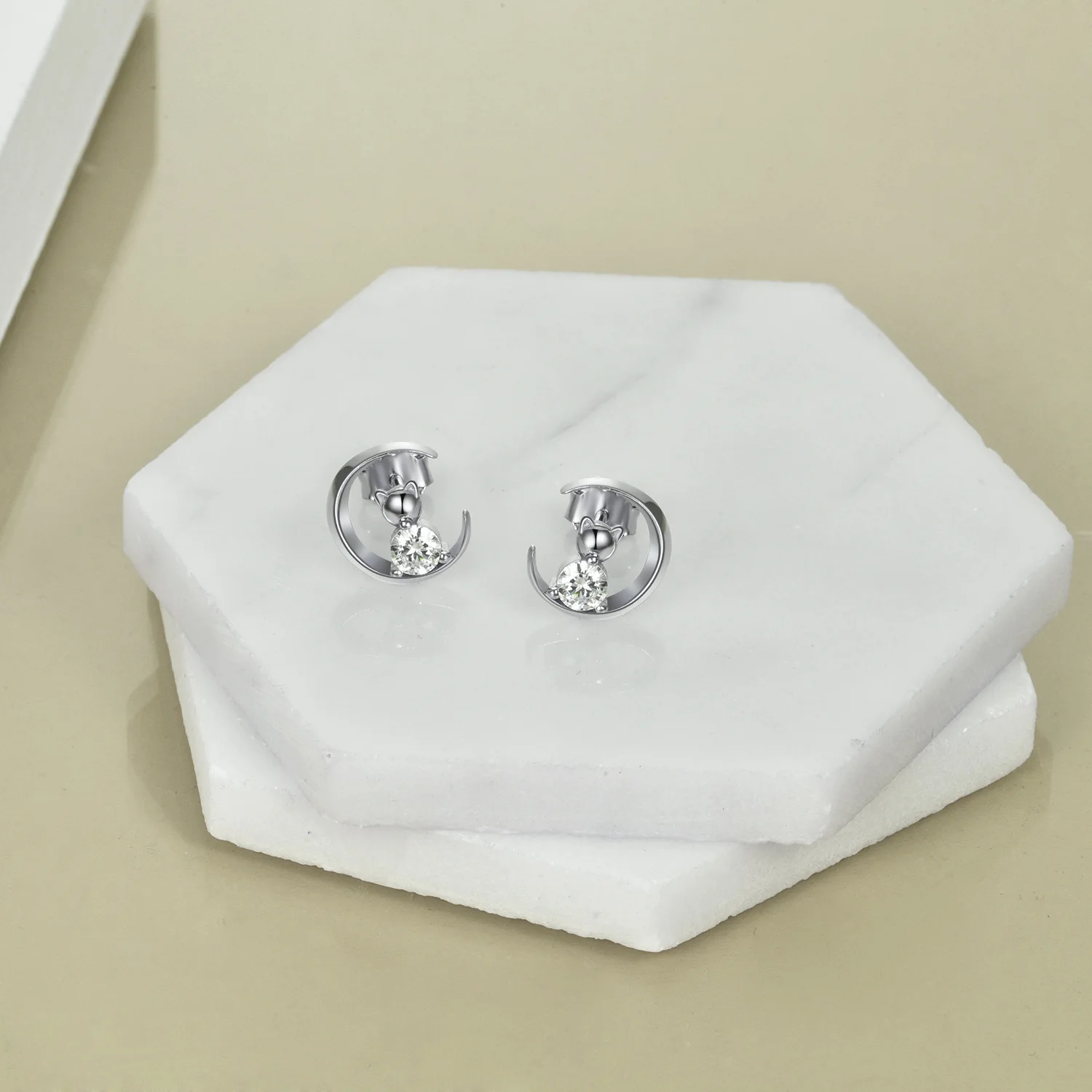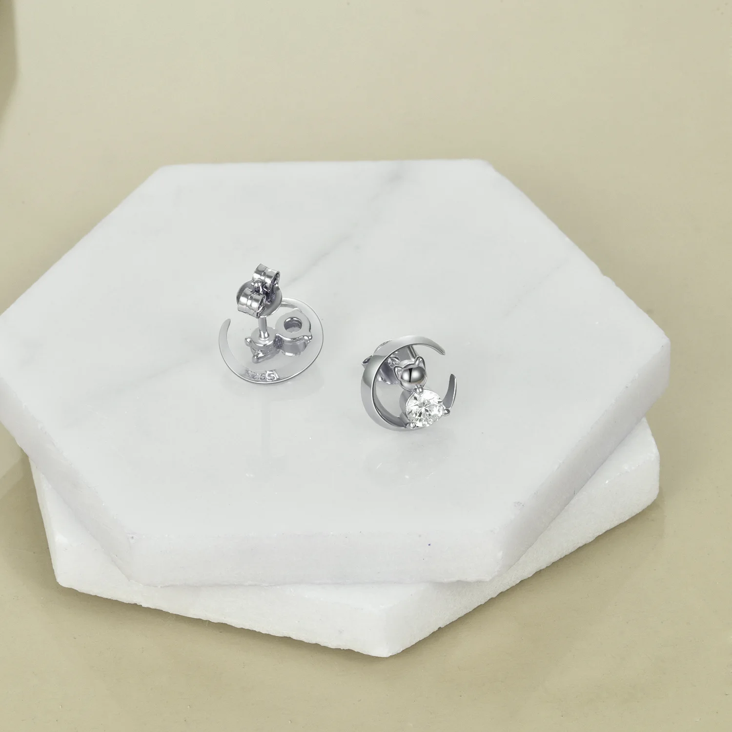 YFN Jewelry Simple Design 925 Sterling Silver Cube Zircon Moon Cat Stud Earrings For Women