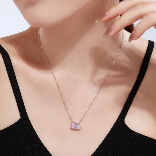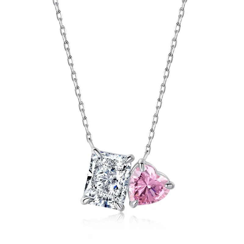 Factory Sale 925 Sterling Silver Cubic Zircon Birthstone Pink Heart Pendant Necklace for Women