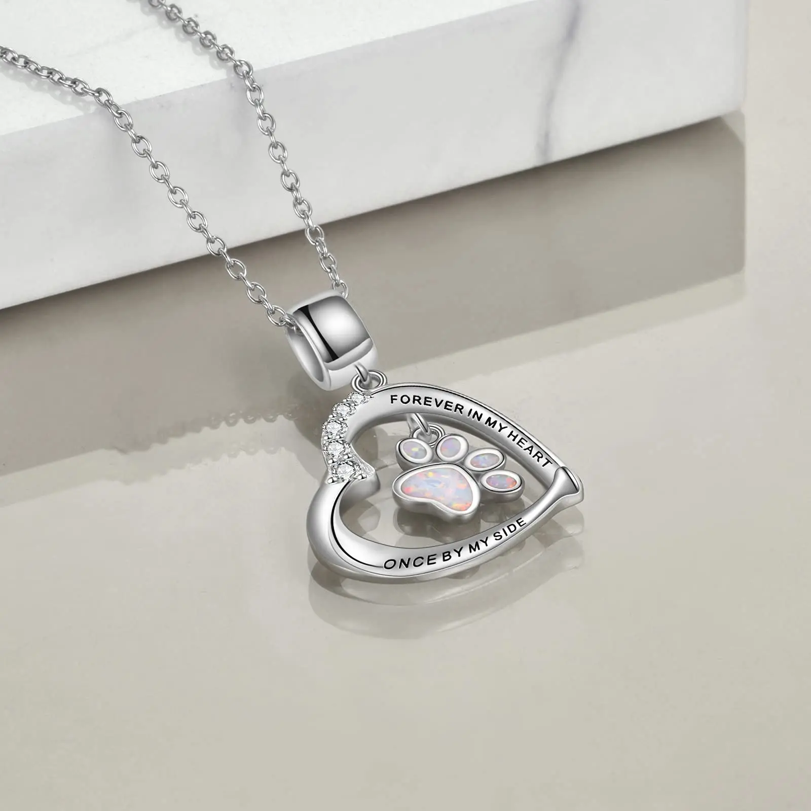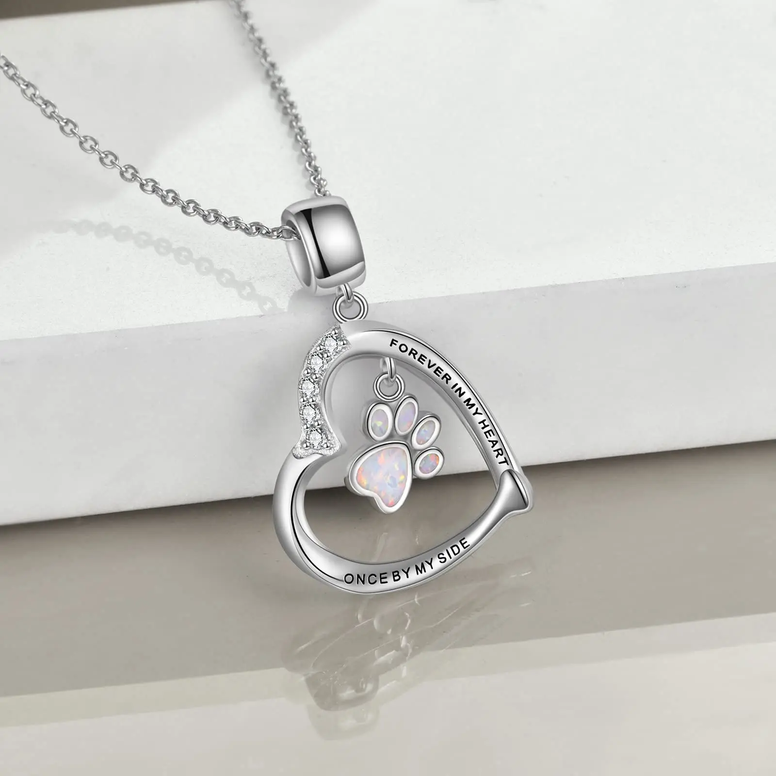 Heart Cat Opal Paw Print Pendant 925 Sterling Silver Necklace Necklaces With Zircon For Women