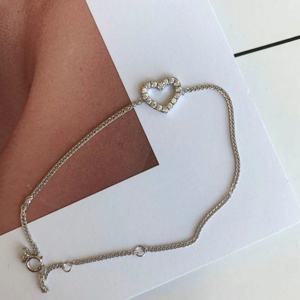 Hot Sale High Quality 925 Sterling Silver Plated 15+4cm Chain Heart Bracelet