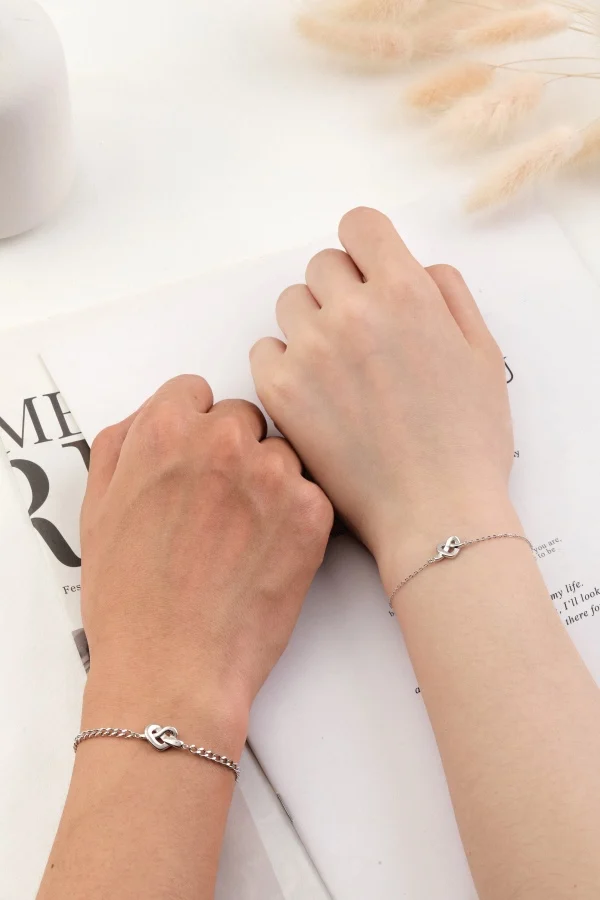 Valentine's Day Fine Jewelry 925 Sterling Silver Love Knot Curb Chain Heart Couple Bracelet