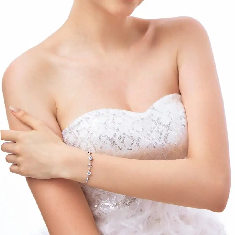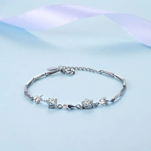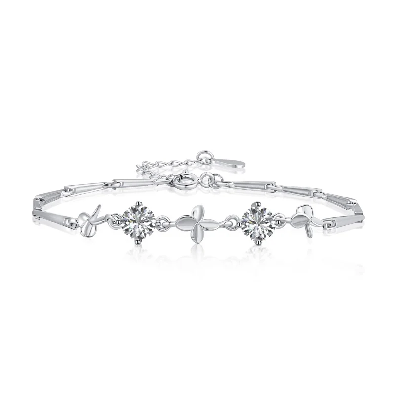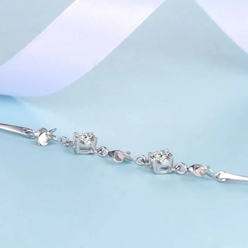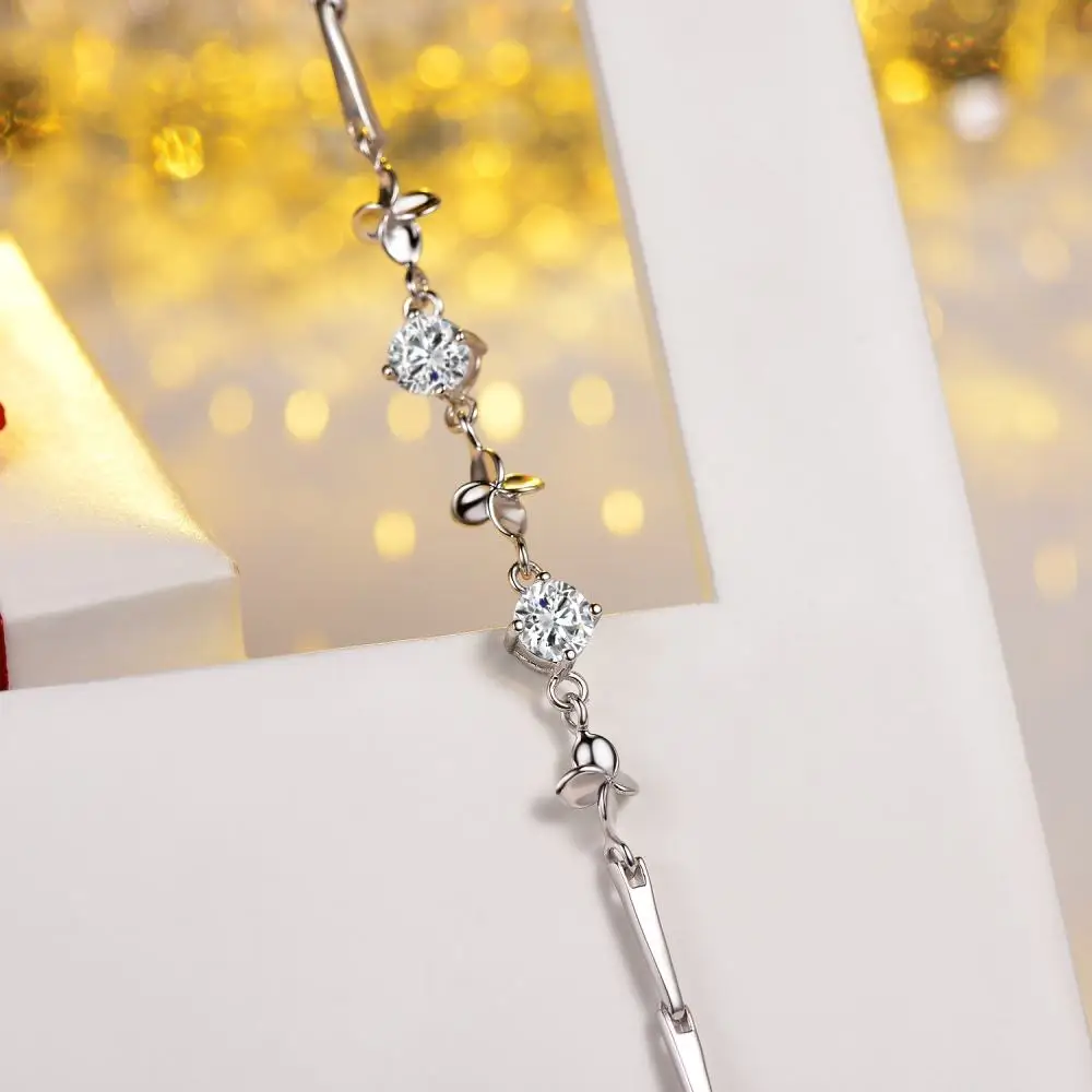 Fine Jewelry 925 Sterling Silver Women Natural Leaf Prong Setting Zircon Bracelet