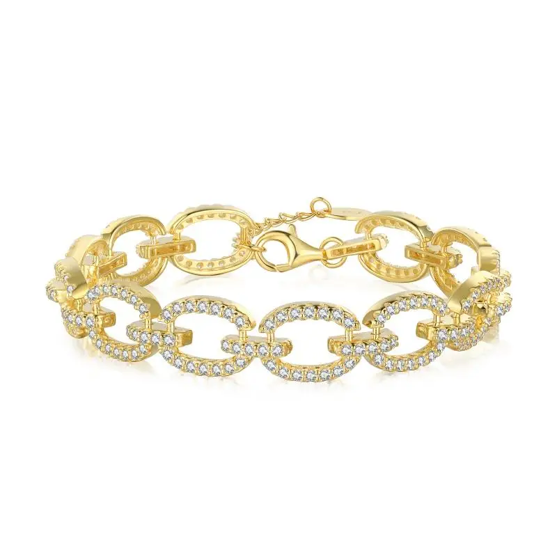 Hot Sale 925 Sterling Silver 18k Gold Plated Chunky Cuban Link Bracelet For Women