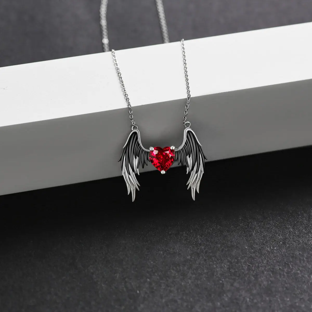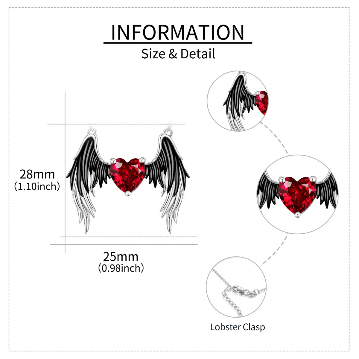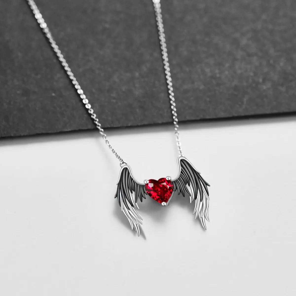 Red Crystal Demons and Angels Wing Pendant 925 Sterling Silver Necklace For Men Women