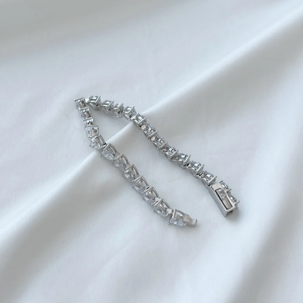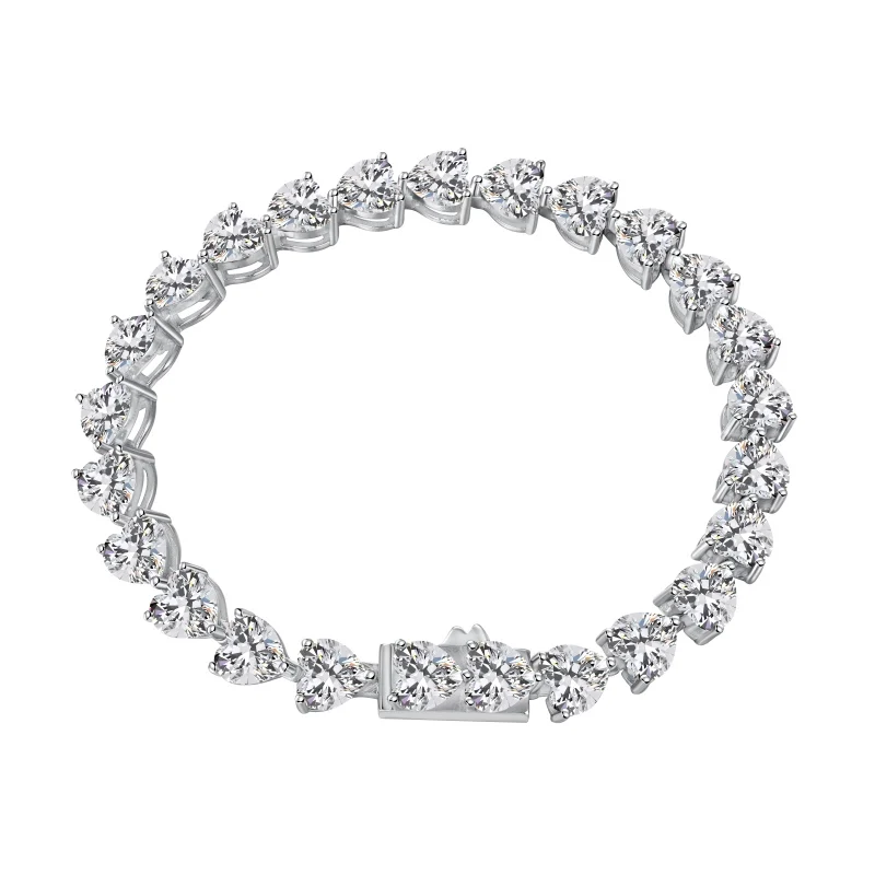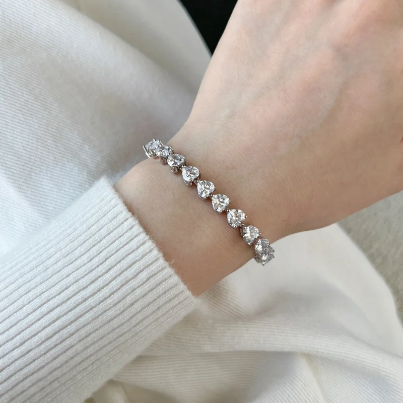 Minimalist Design 925 Sterling Silver Clear Cubic Zircon Heart Stone Tennis Bracelet For Women