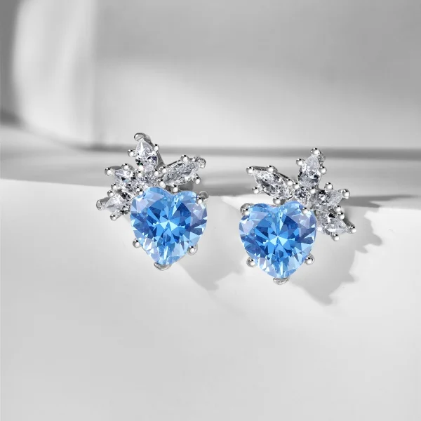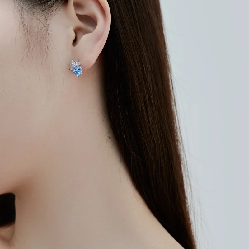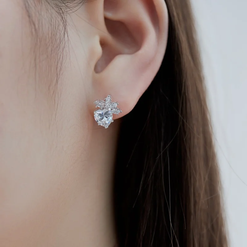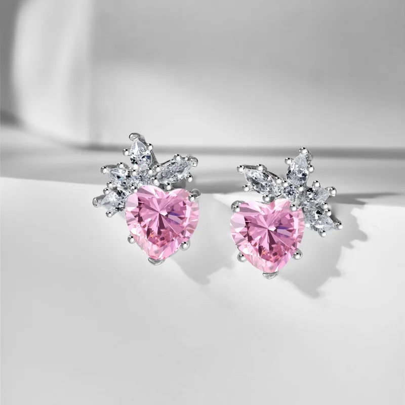Hypoallergenic 925 Sterling Silver 5A Cubic Zircon Pink Sapphire Snowflake Heart Stud Earrings for Women