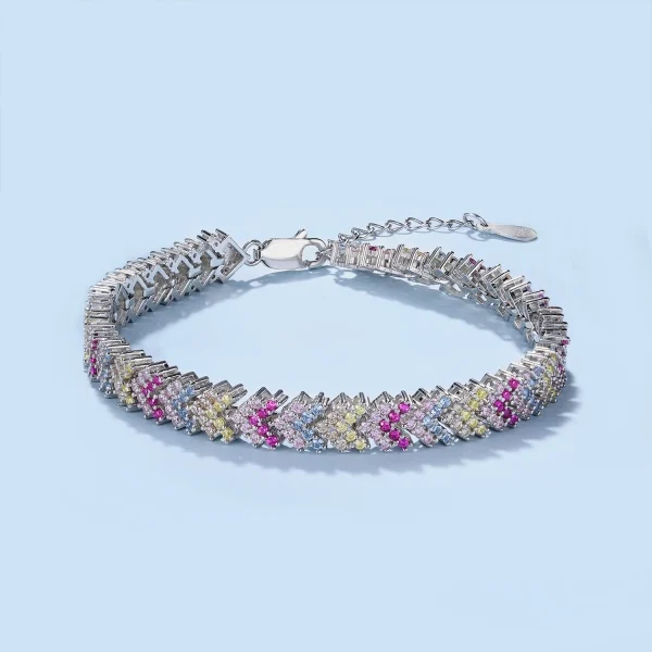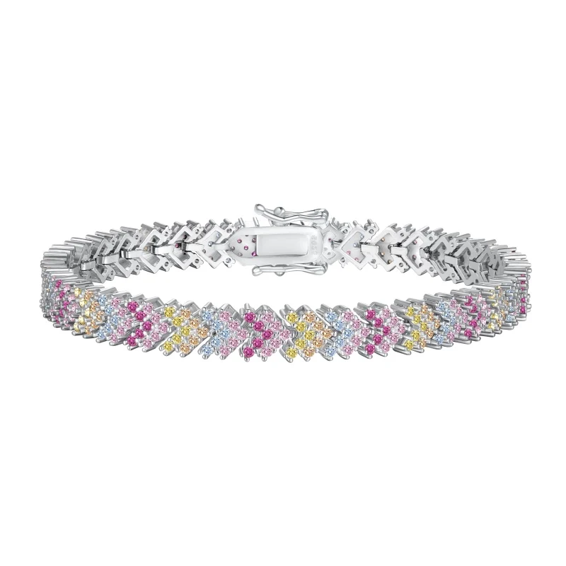 Minimalist Design High Quality 925 Sterling Silver Jewelry Colorful Round Zircon Tennis Bracelet