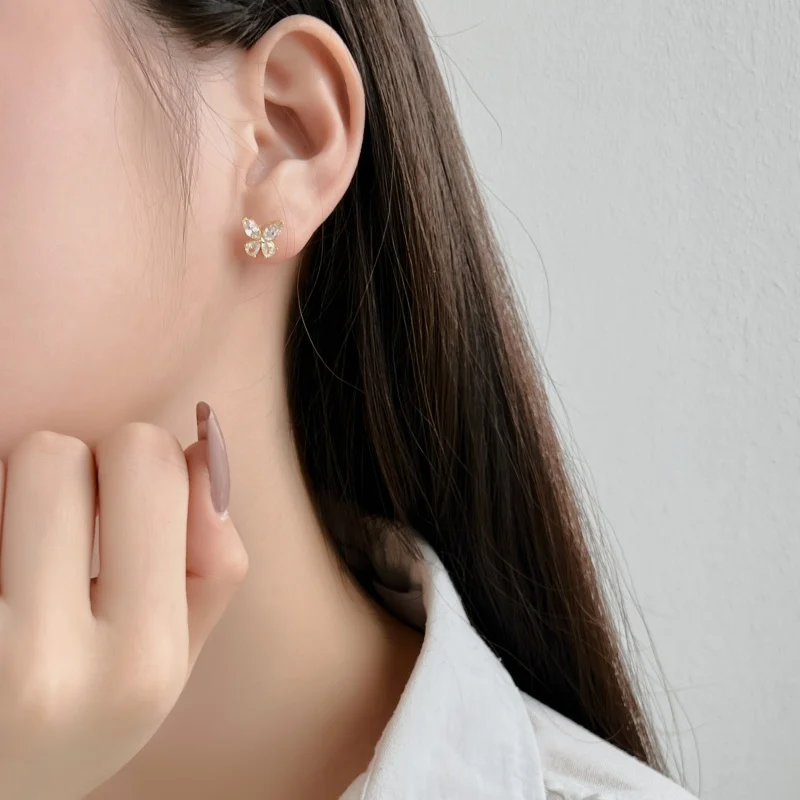 Fine Jewelry 925 Sterling Silver Rhodium Plated Zircon Butterfly Stud Earrings For Women