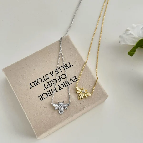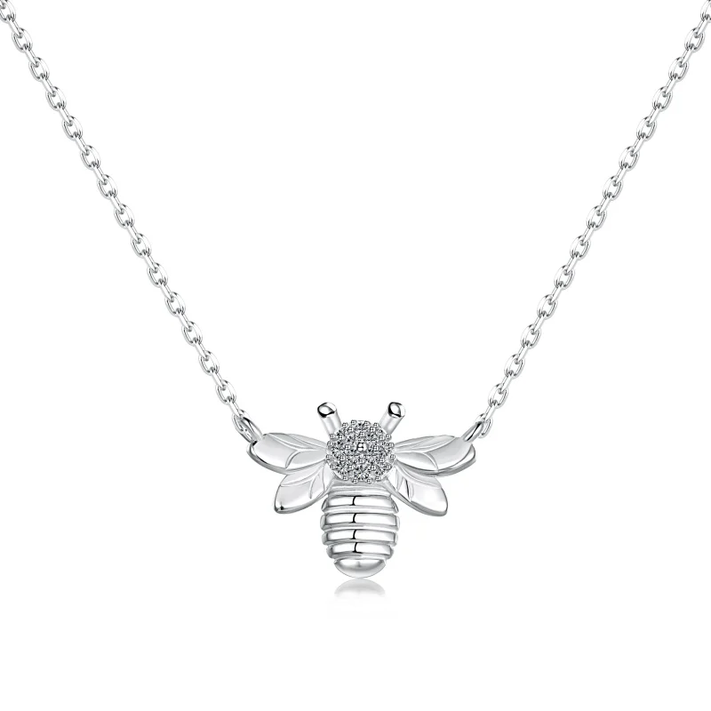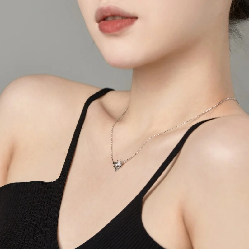 Minimalist Animal Jewelry 925 Sterling Silver White Gold Plated Cute Bee Cubic Zircon Pendant Necklace