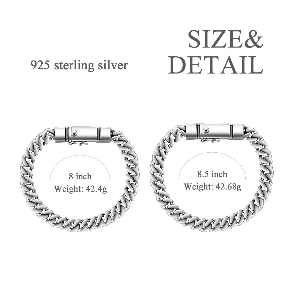 YFN Jewelry 925 Sterling Silver 8.5 inches Miami Cuban Link Chain Bracelet for Men