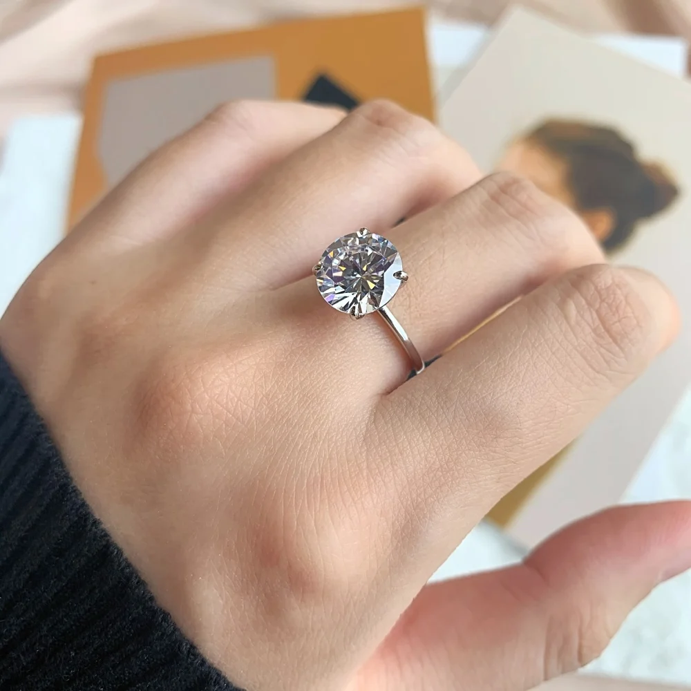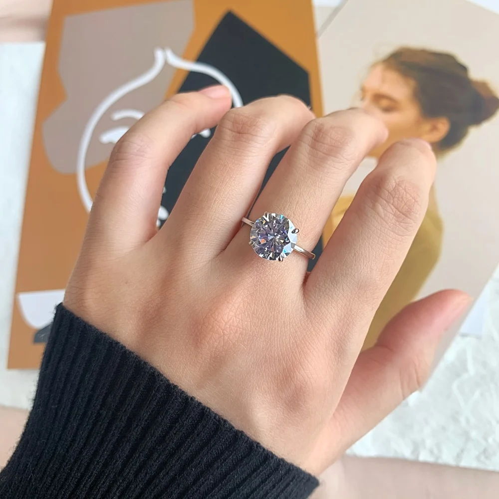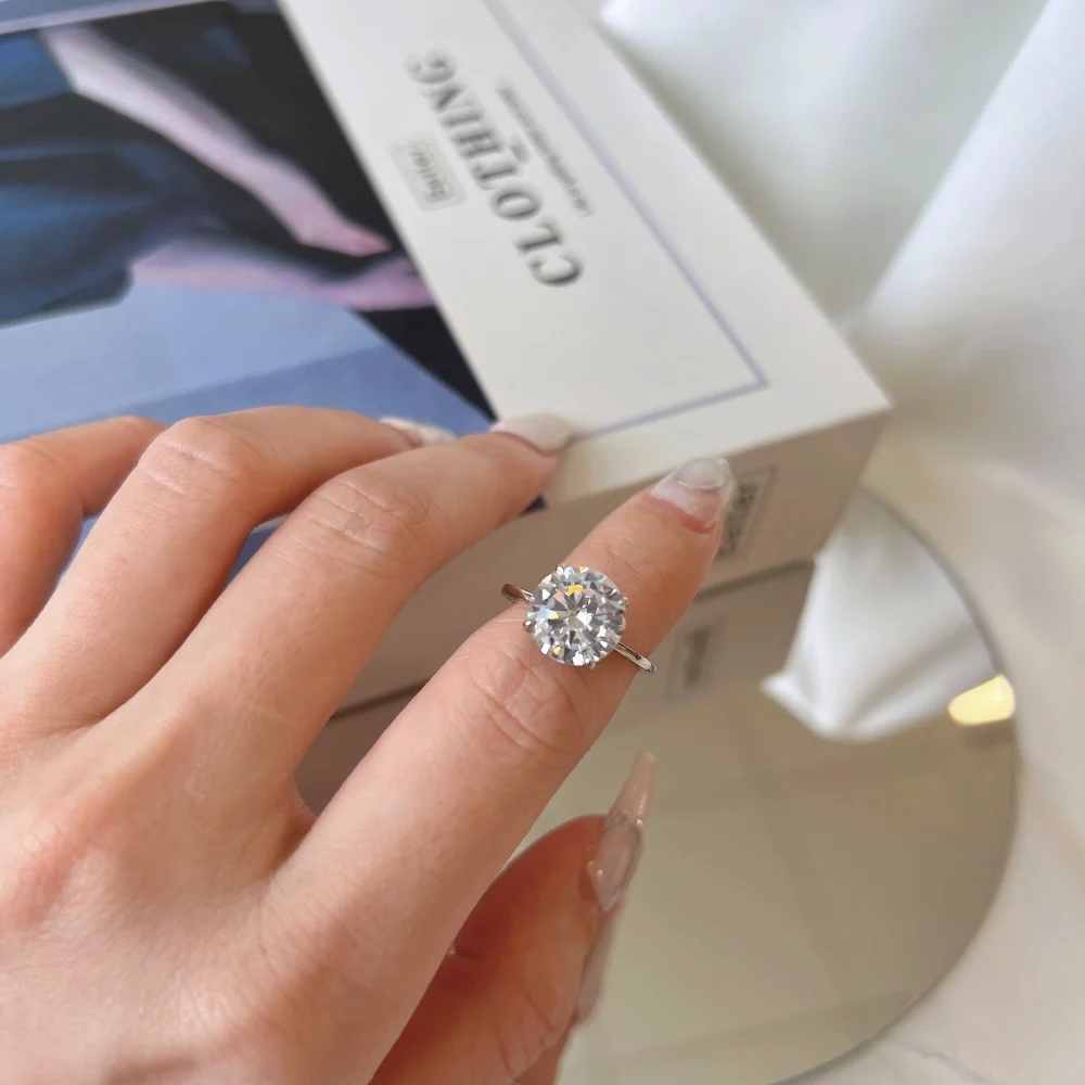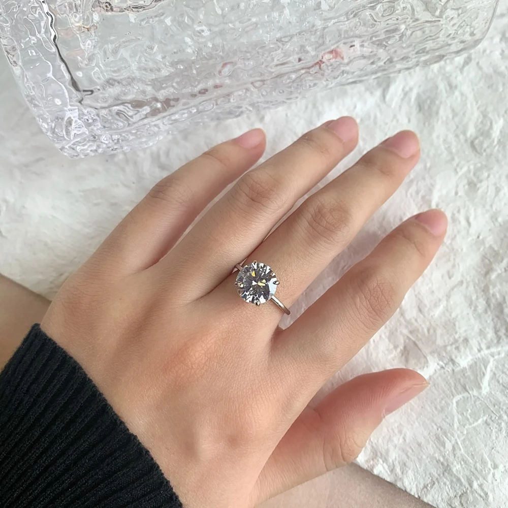 Classic Design 925 Sterling Silver Round Brilliant Cut Zircon Wedding Ring For Women