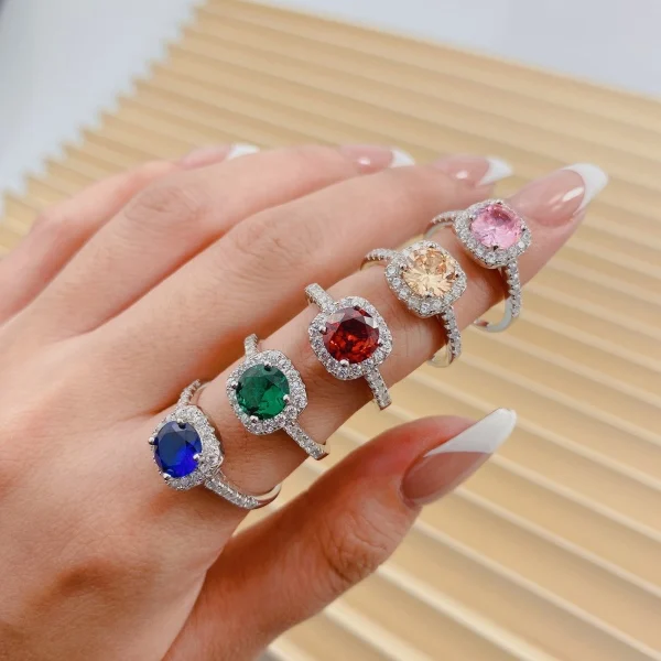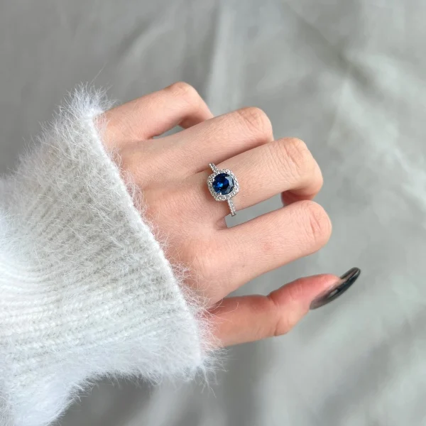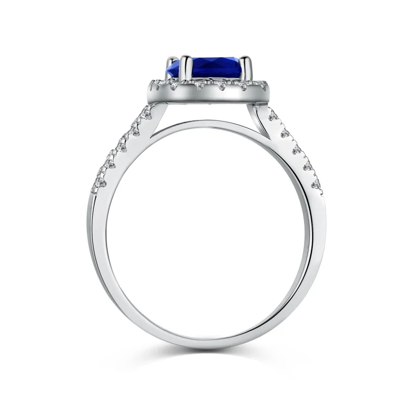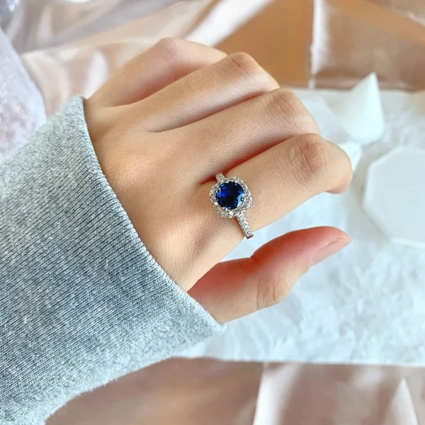 Fine Jewelry Luxury 925 Sterling Silver Zircon Halo Setting Colour Blue Zircon Ring For Women