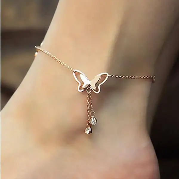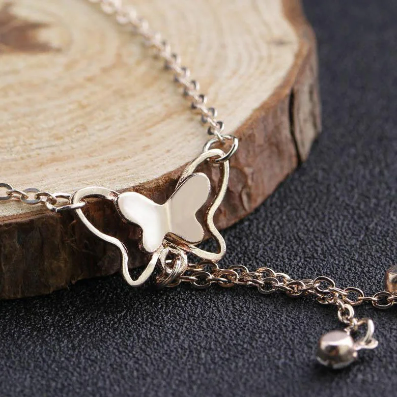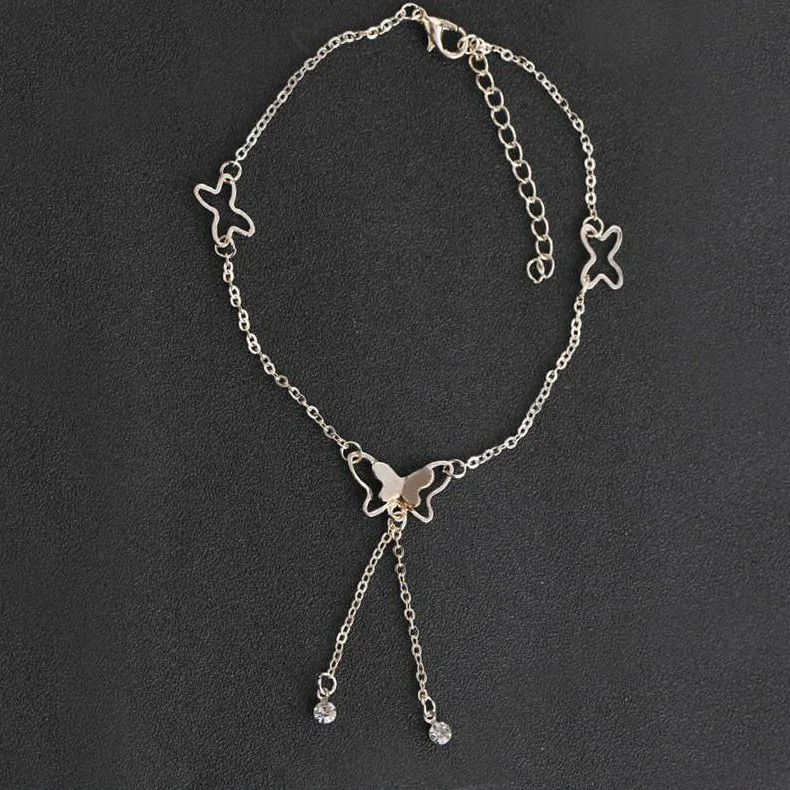 New Design Foot Jewelry 925 Sterling Silver Rhodium Plated Adjustable Chain Butterfly Anklets