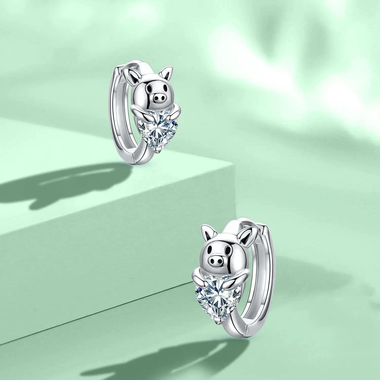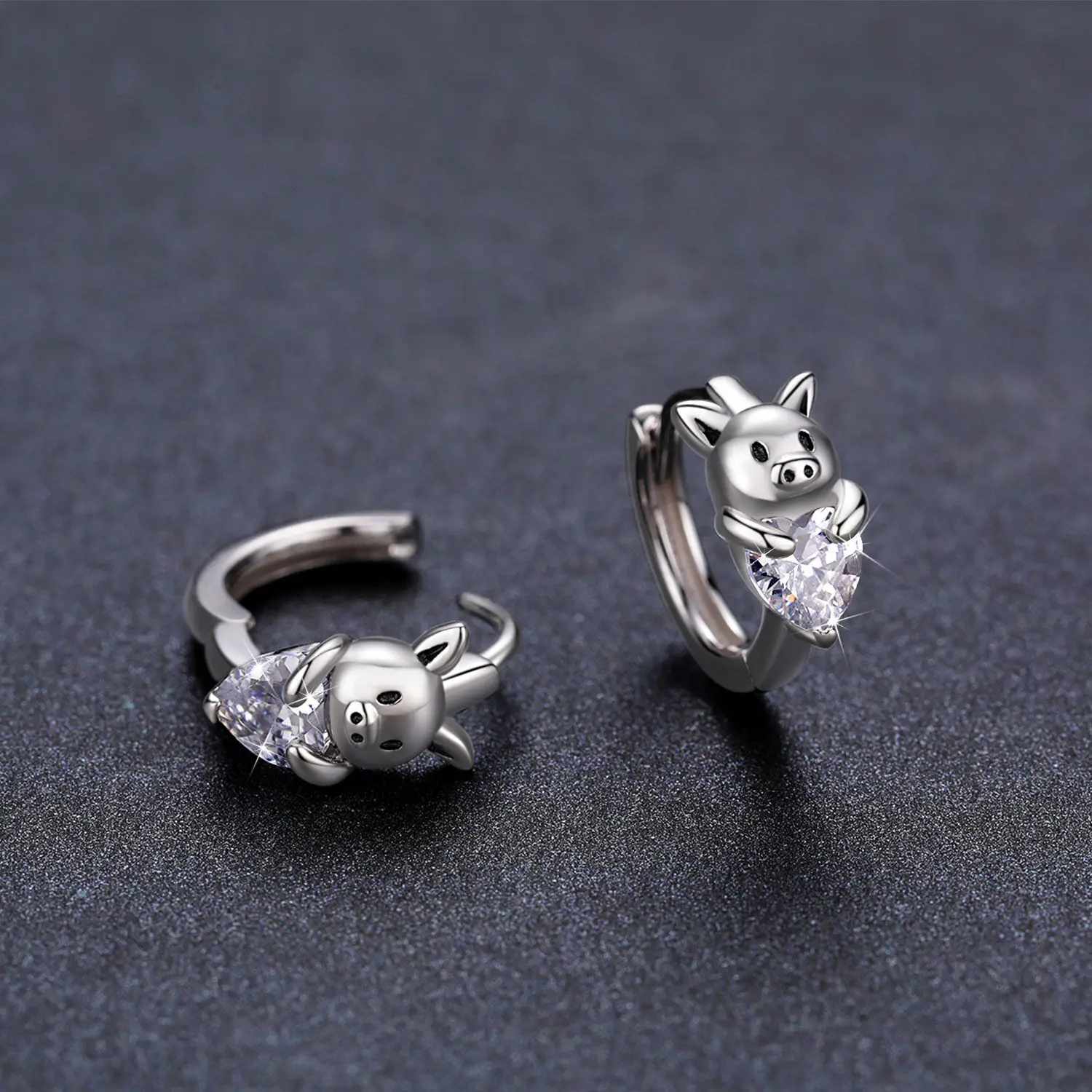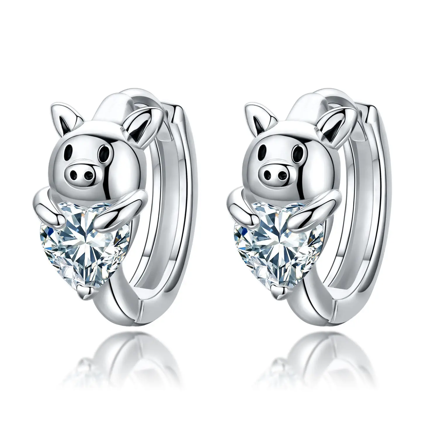 925 Sterling Silver Hypoallergenic Jewelry Small Heart Cubic Zircon Cute Animal Pig Love Hoop Earrings
