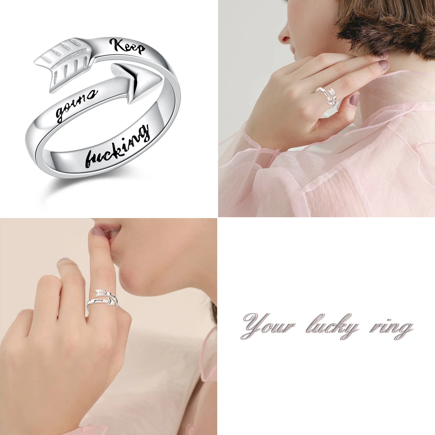 Fine Jewelry 925 Sterling Silver Custom Open Carved Arrowhead Lucky Ring