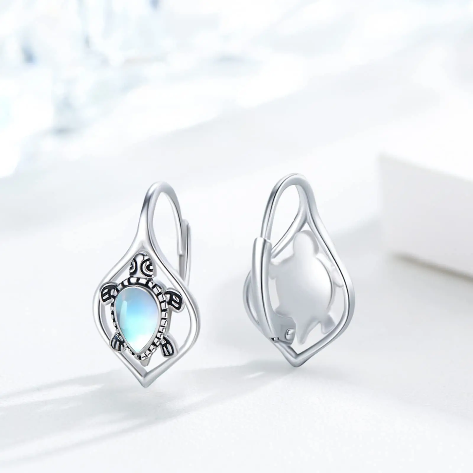 925 Sterling Silver rhodium plating animal lucky turtle leverback earring for women gift