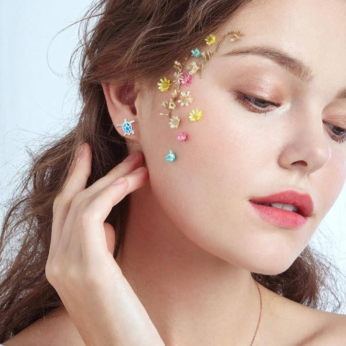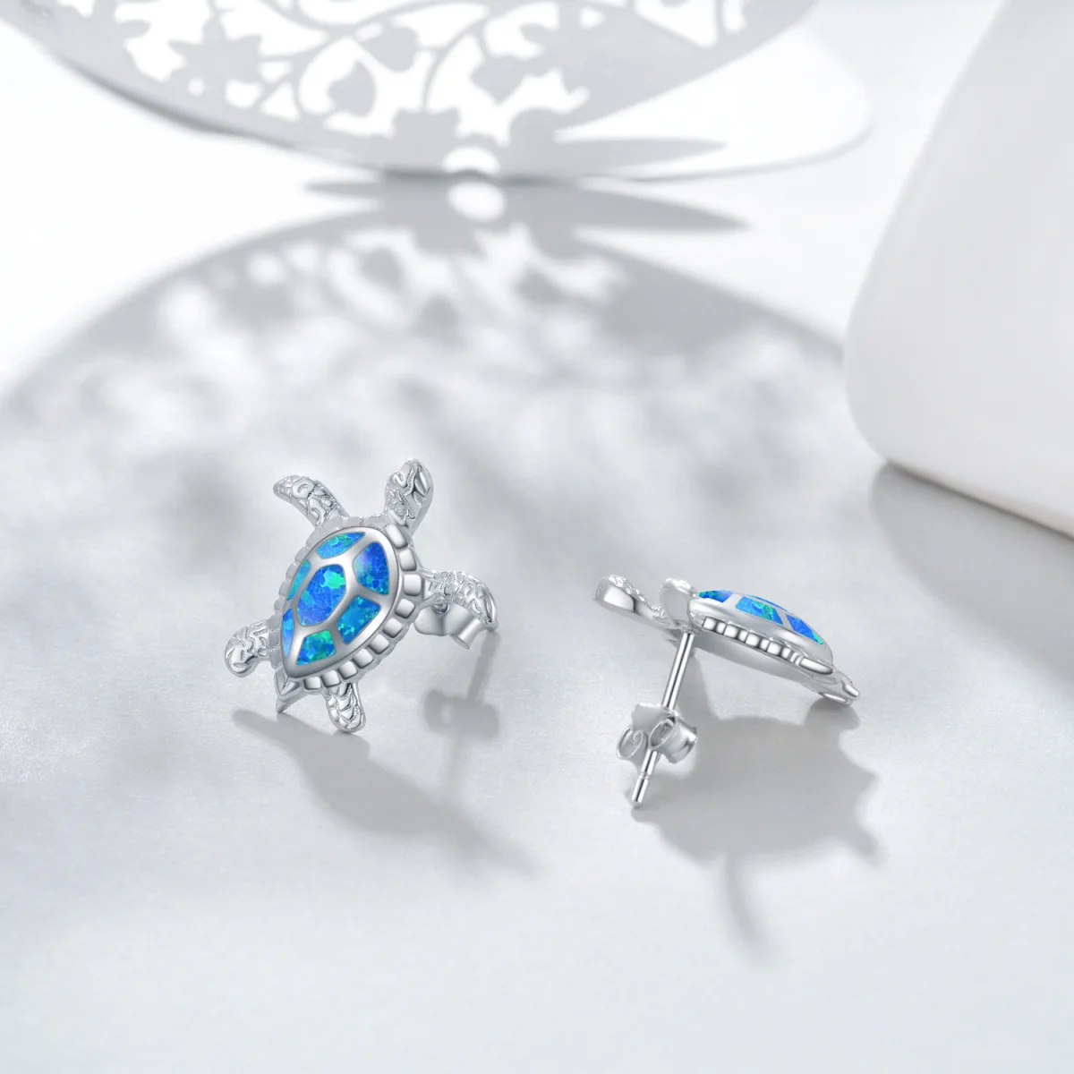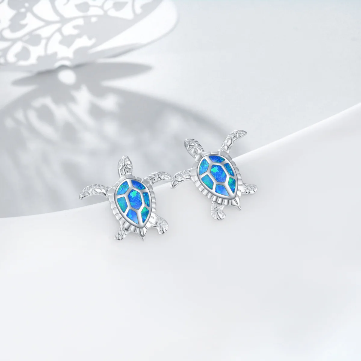 Blue Opal Sea Turtle 925Sterling Silver Stud Earrings