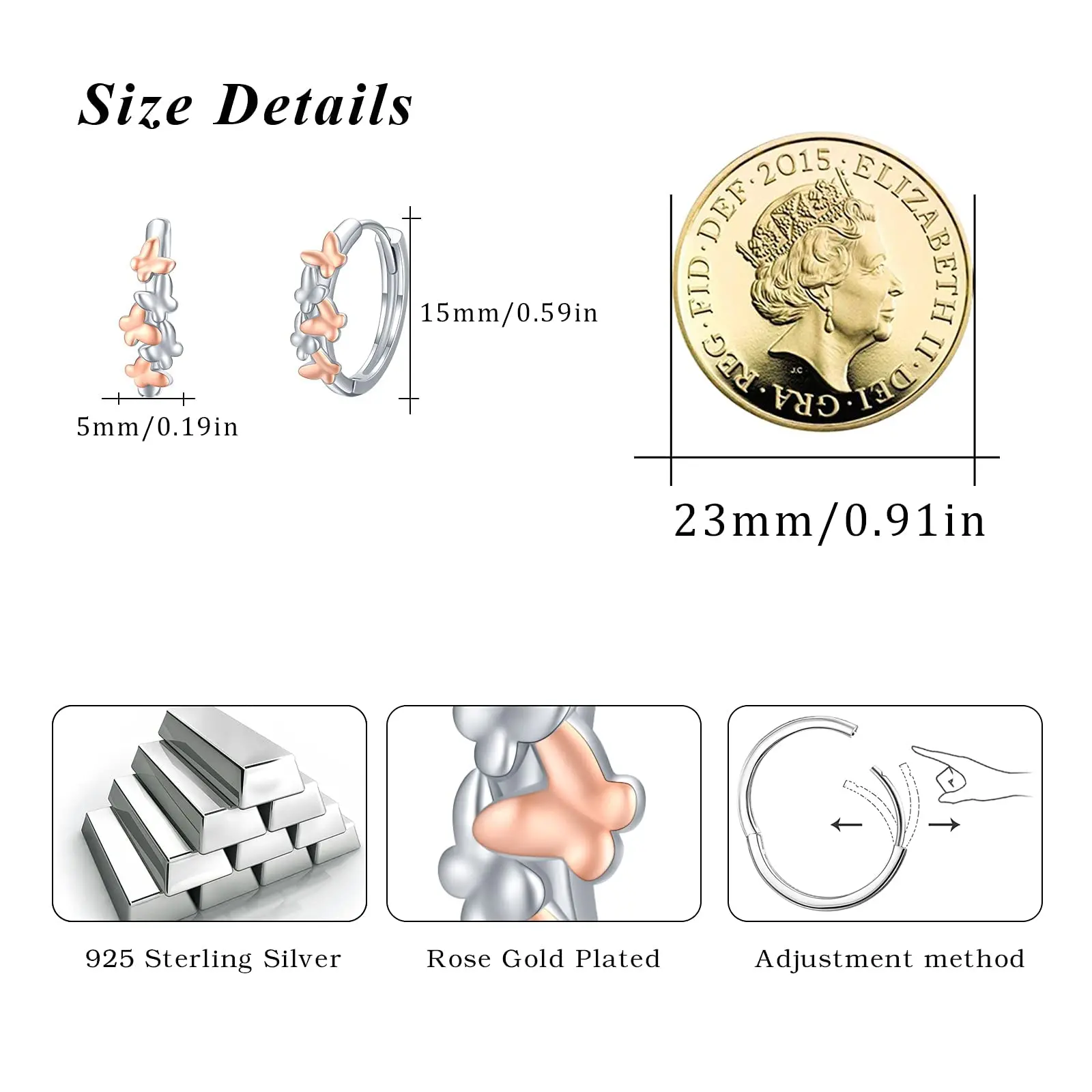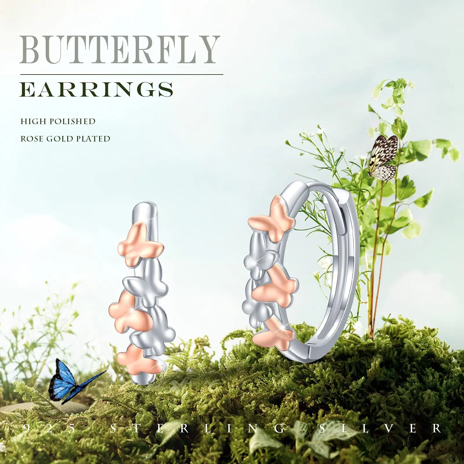 Fashion Jewelry 925 Sterling Silver Huggie Butterfly Earrings Gift for Women Girls