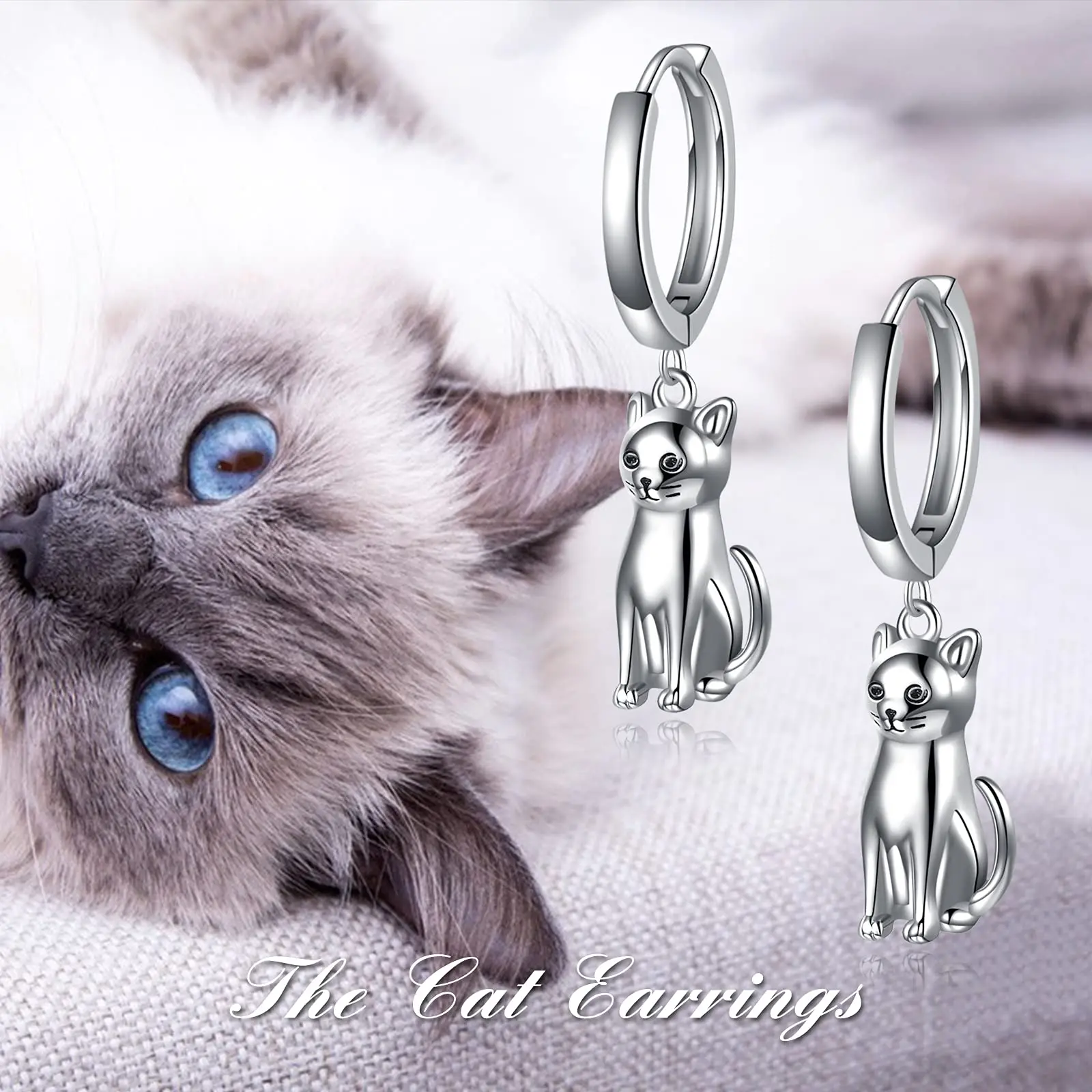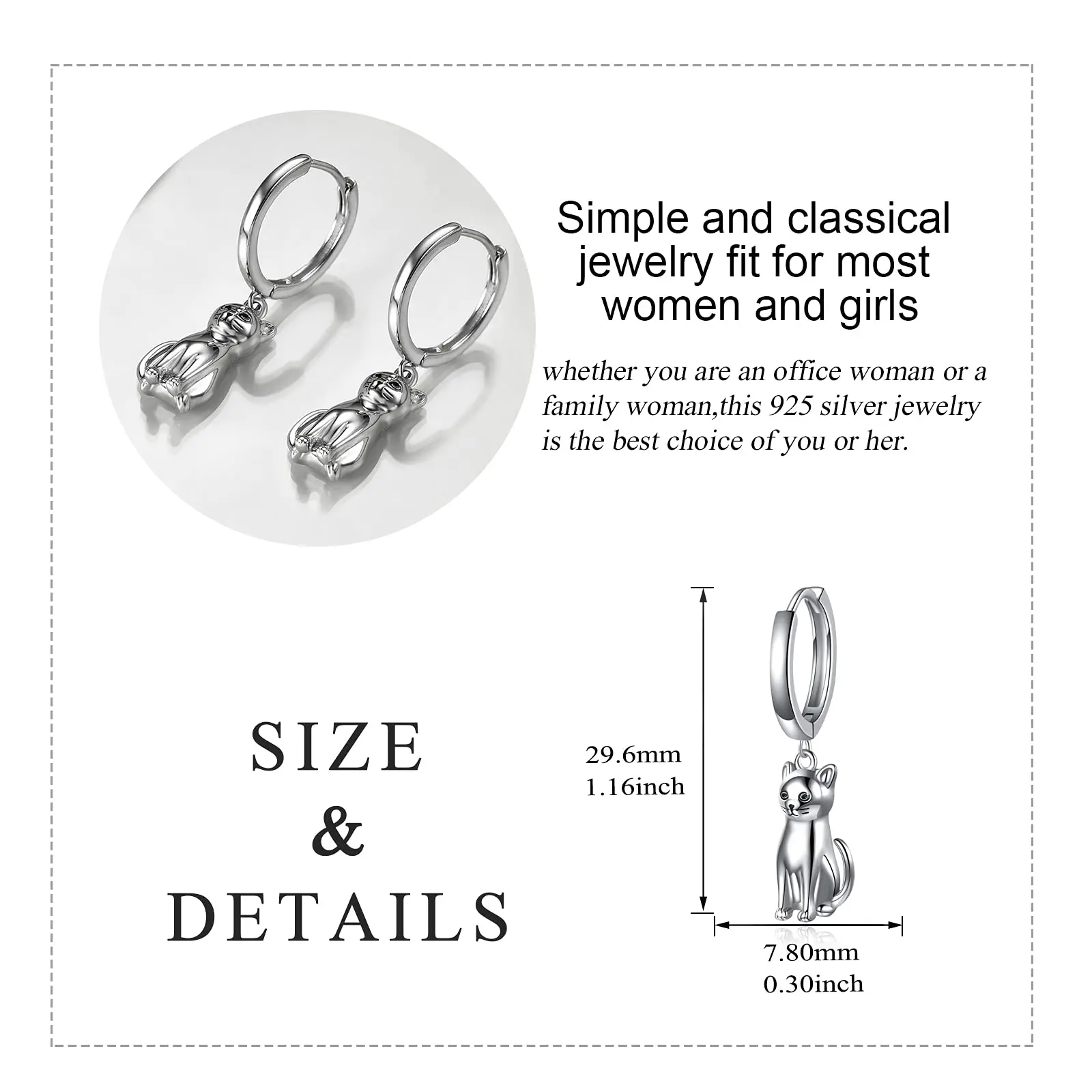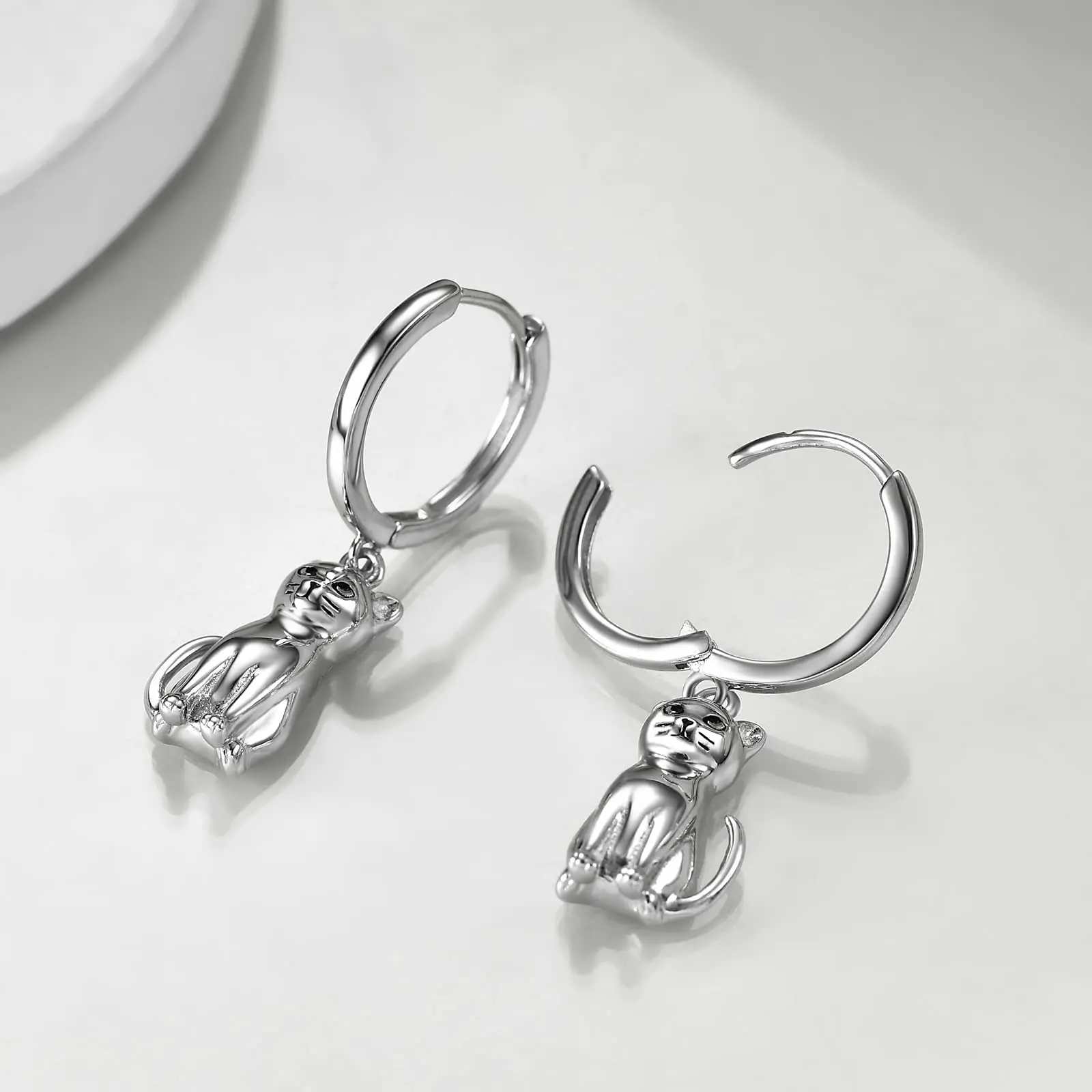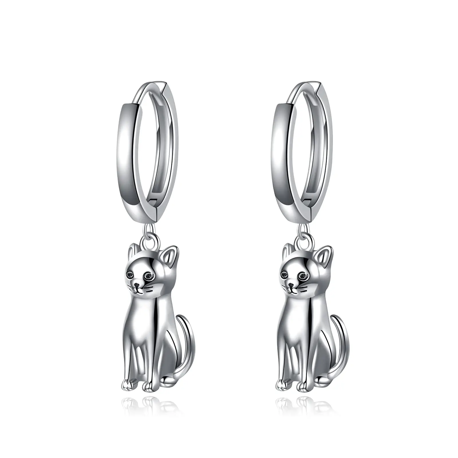 Animal Cat 925 Sterling Silver Dangle Drop Hoop Earrings
