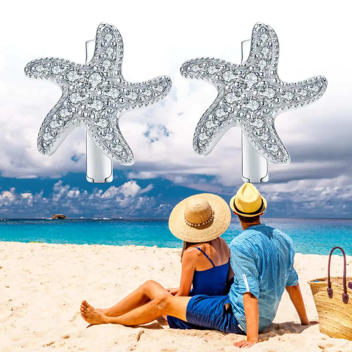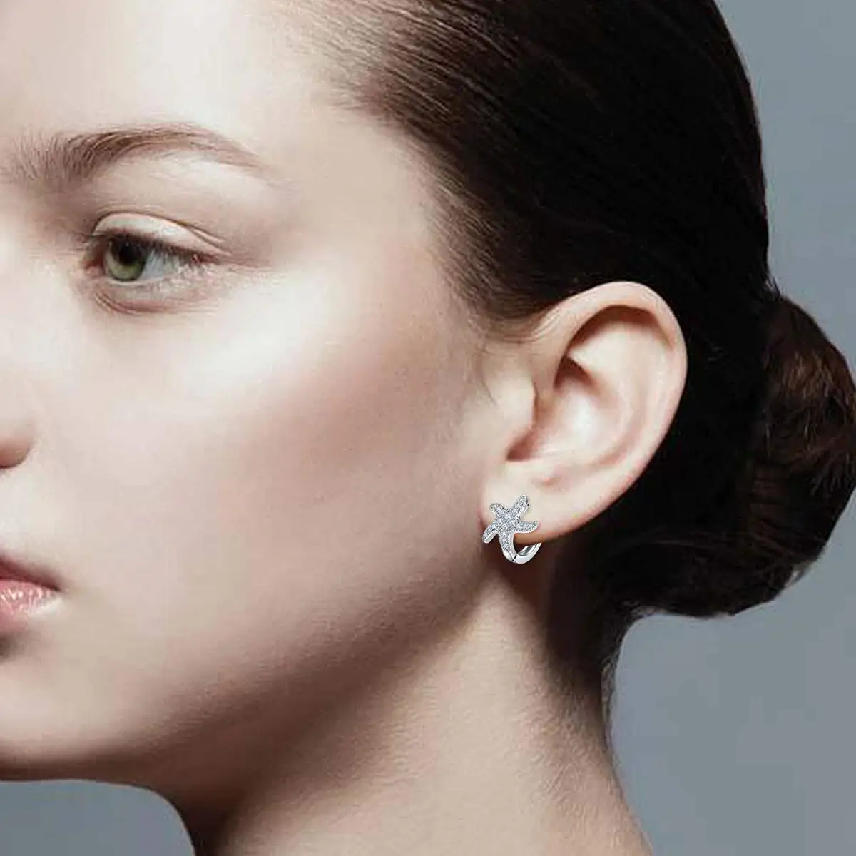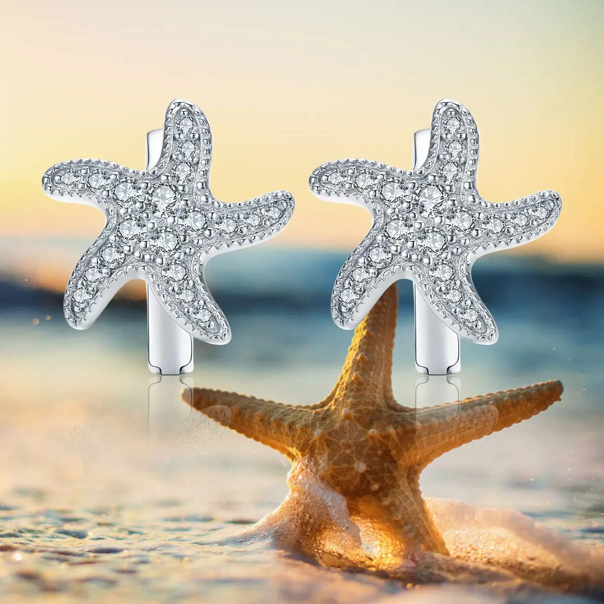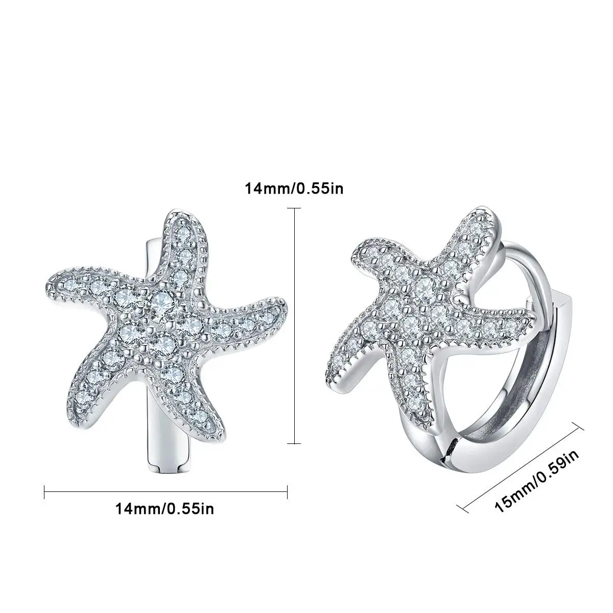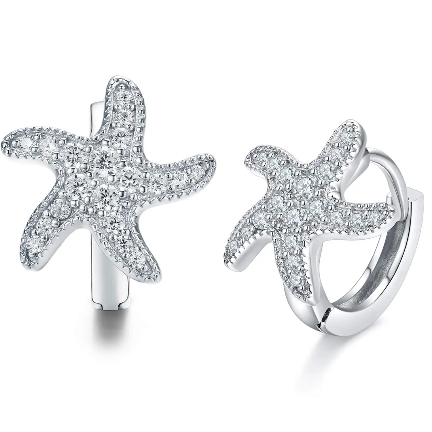Fashion Jewelry 925 Sterling Silver zircon starfish beach Hoop Earrings