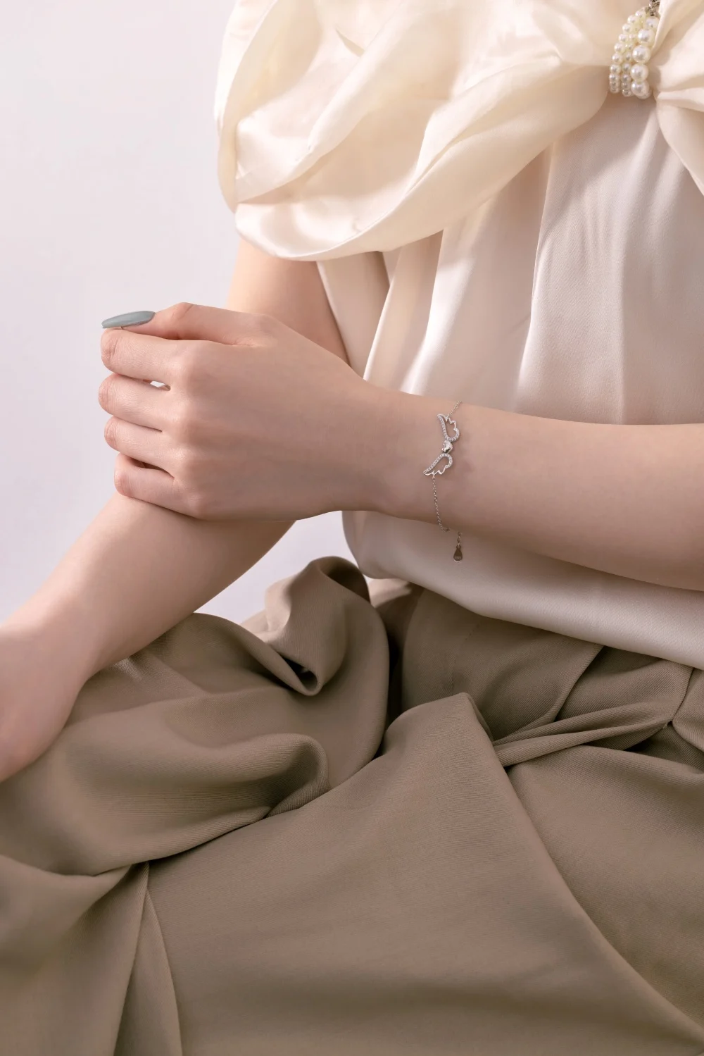 YFN Fine Jewelry 925 Sterling Silver Round Zircon Inlaid Heart Angel Wings Bracelet
