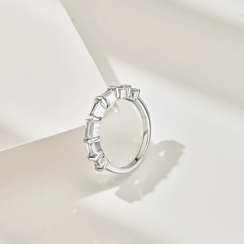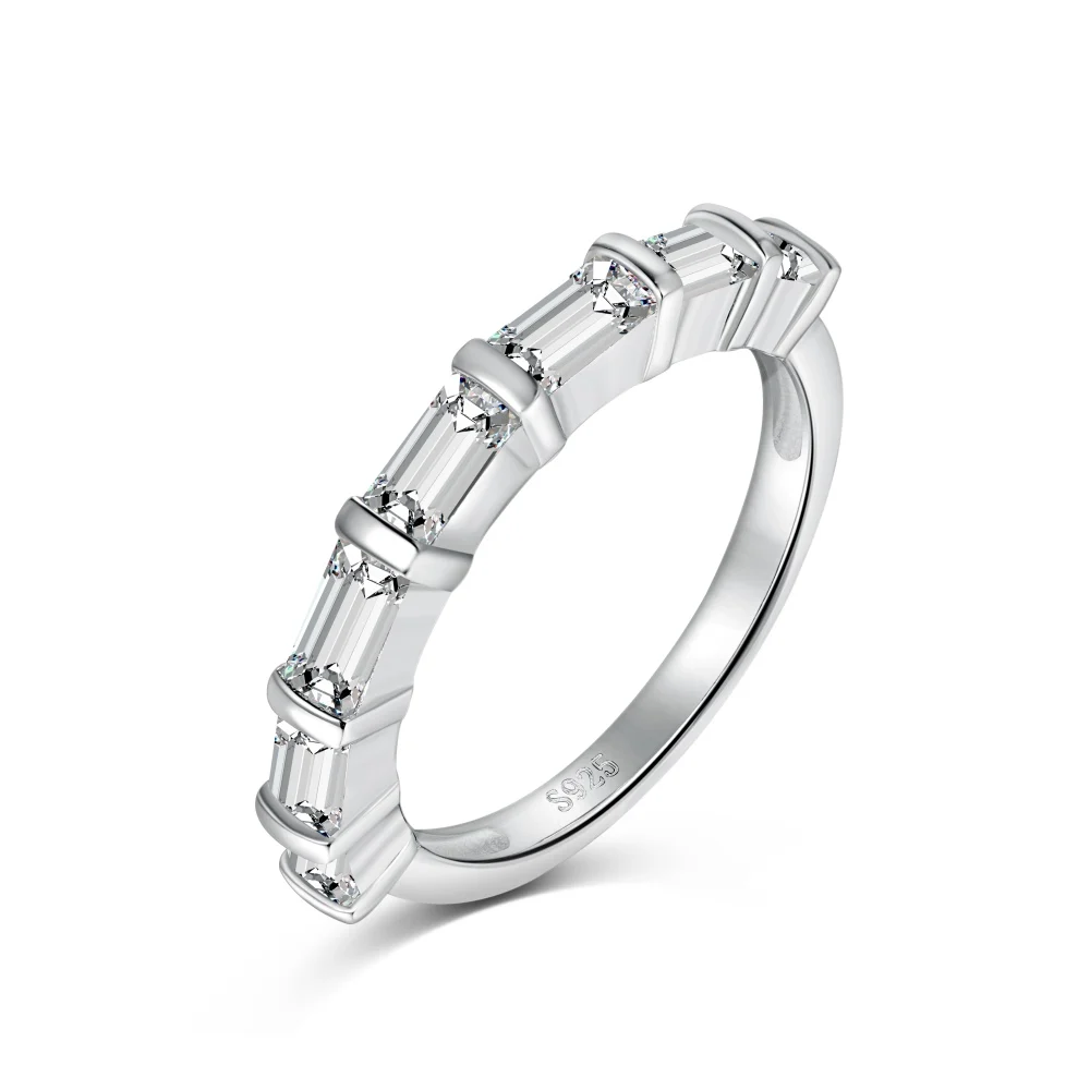 New Arrival 925 Sterling Silver Rhodium Plated 3mm Rectangular Zircon Setting Design Women Ring