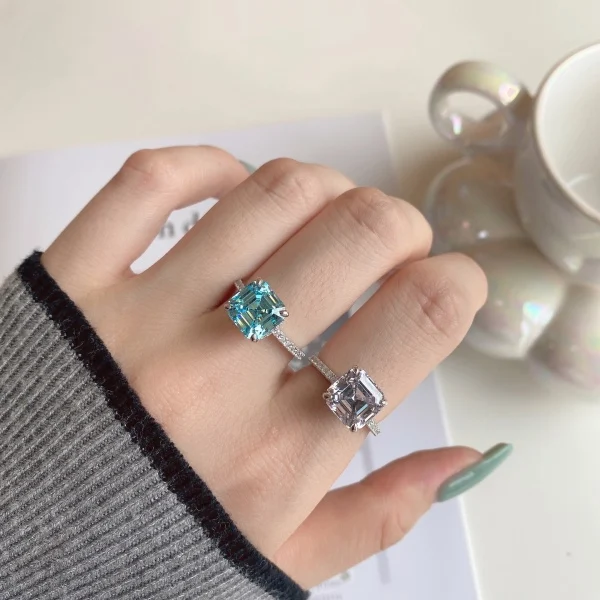 Luxury Design 925 Sterling Silver Square 4 Carat 5A Zircon Setting Exquisite Engagement Ring