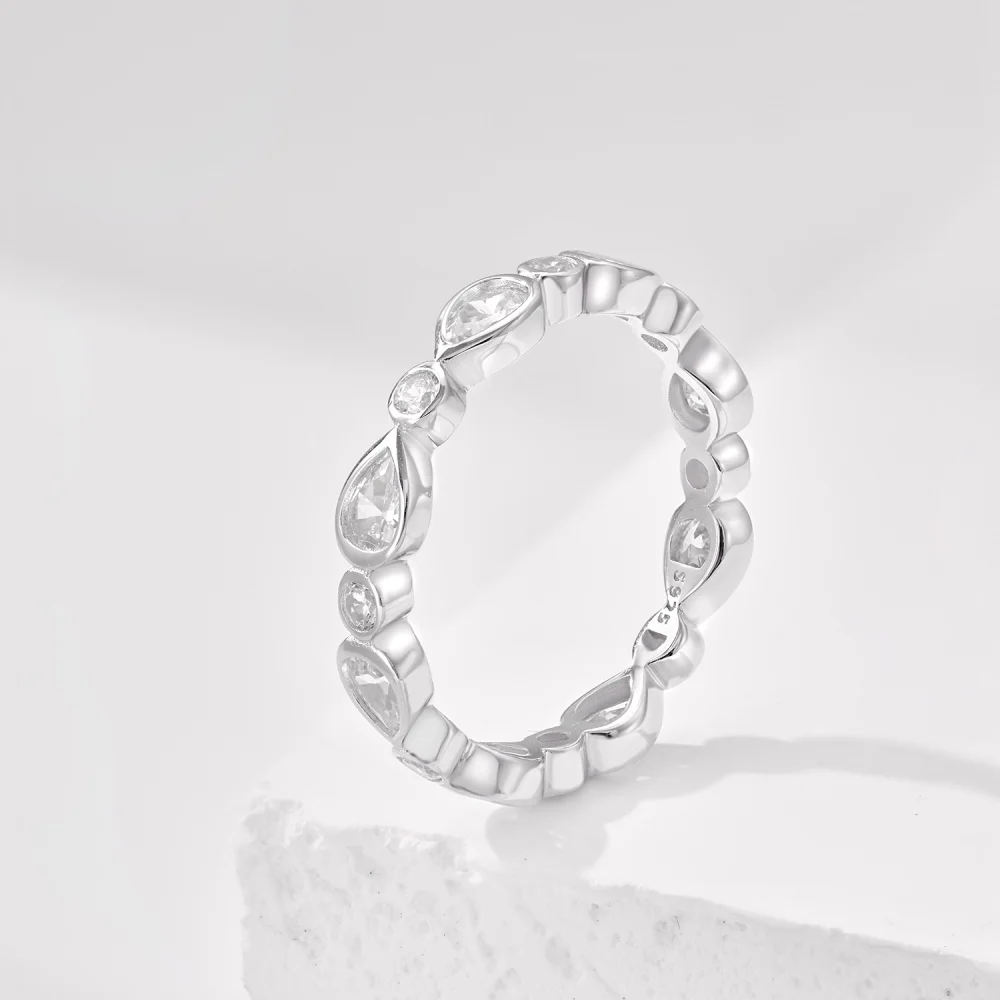 YFN Jewelry 925 Sterling Silver Rhodium Plated Pear Cut 3mm*4mm Zircon Engagement Ring