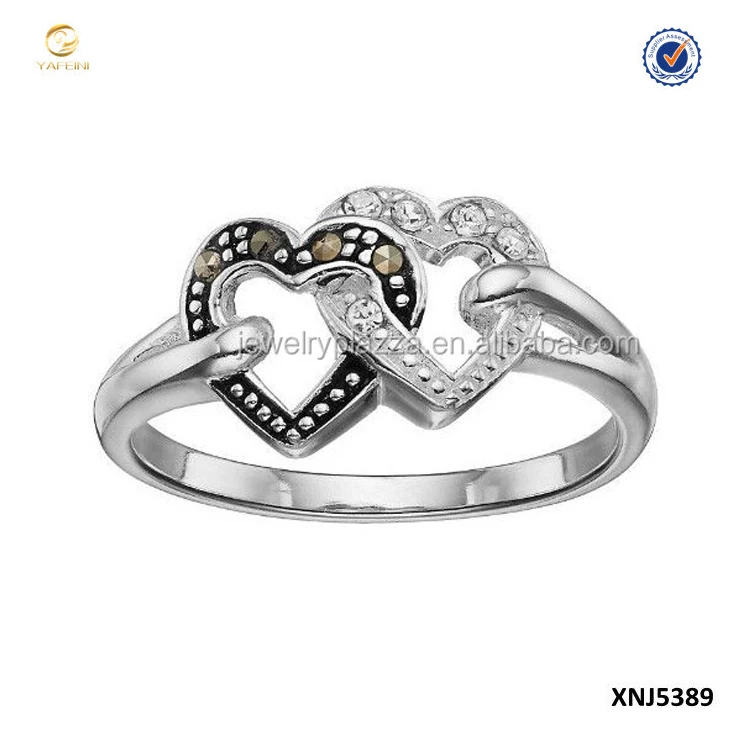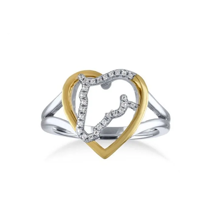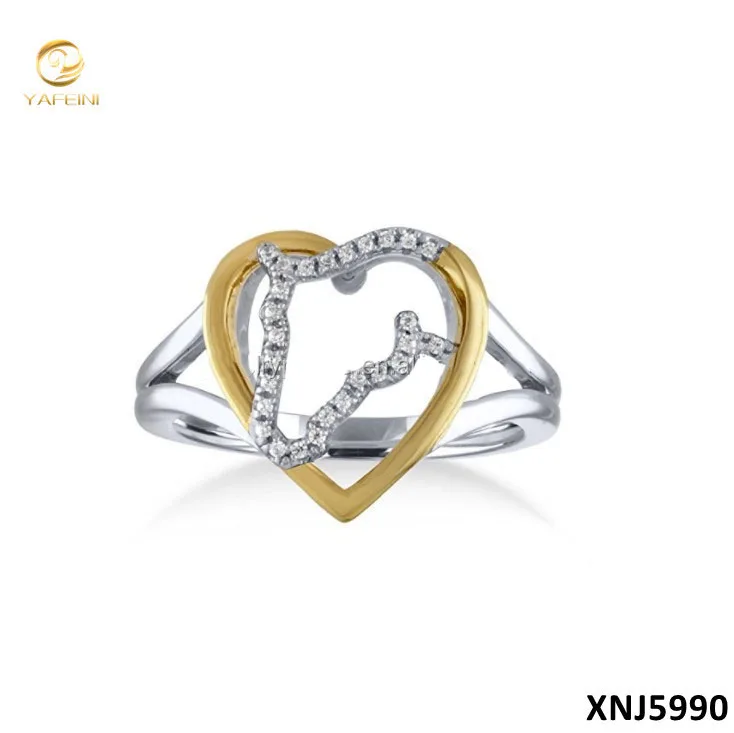 New Design 925 Sterling Silver Fashion Jewelry Double color Plated Heart Horse Ring