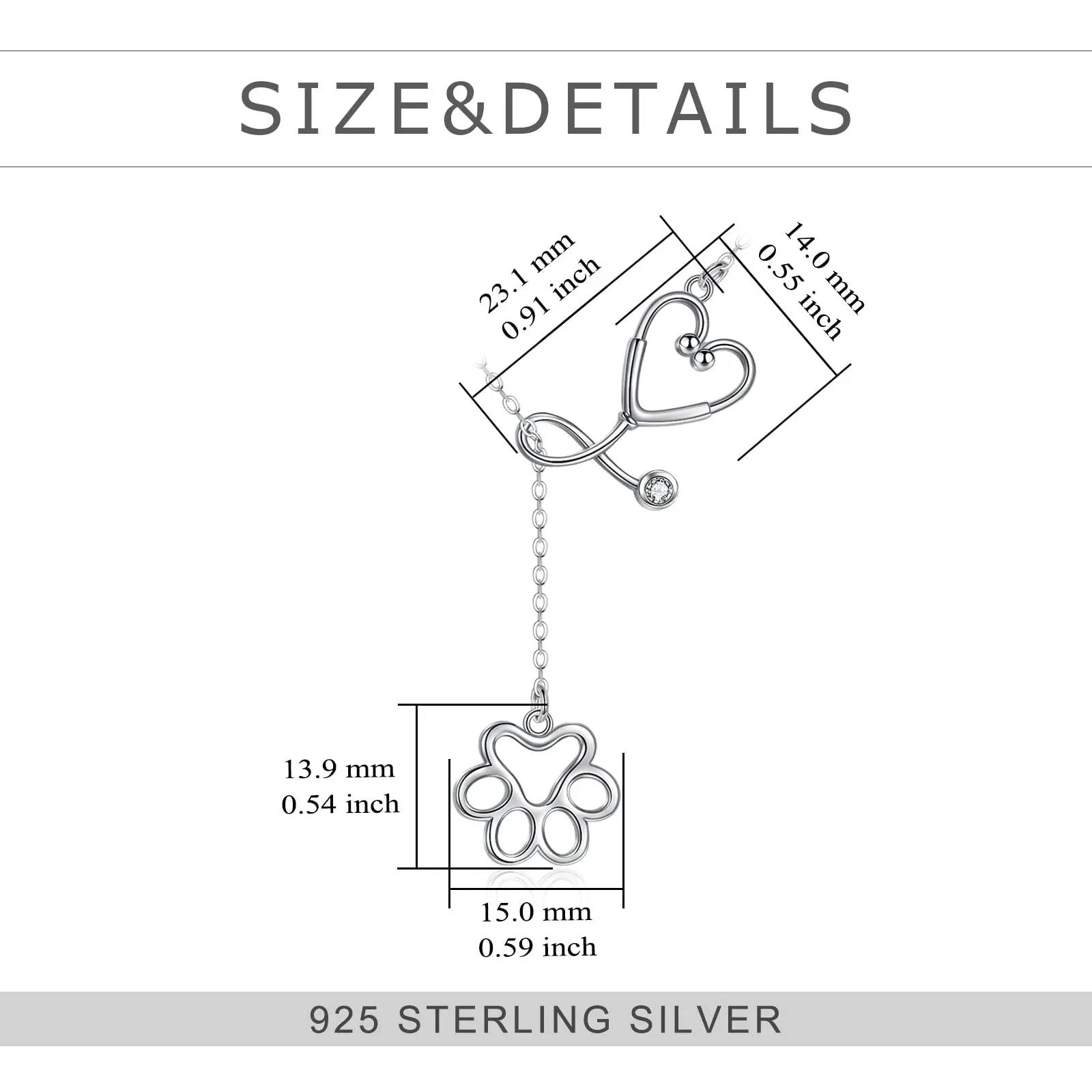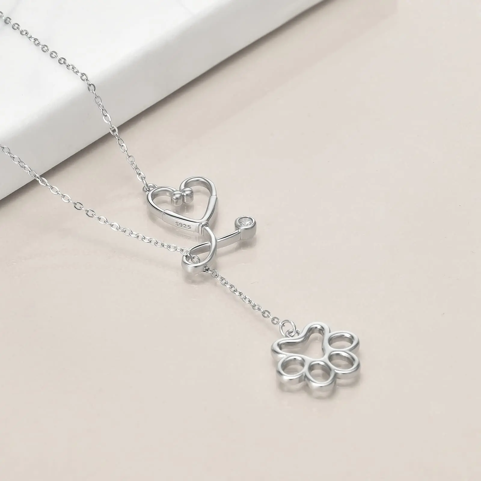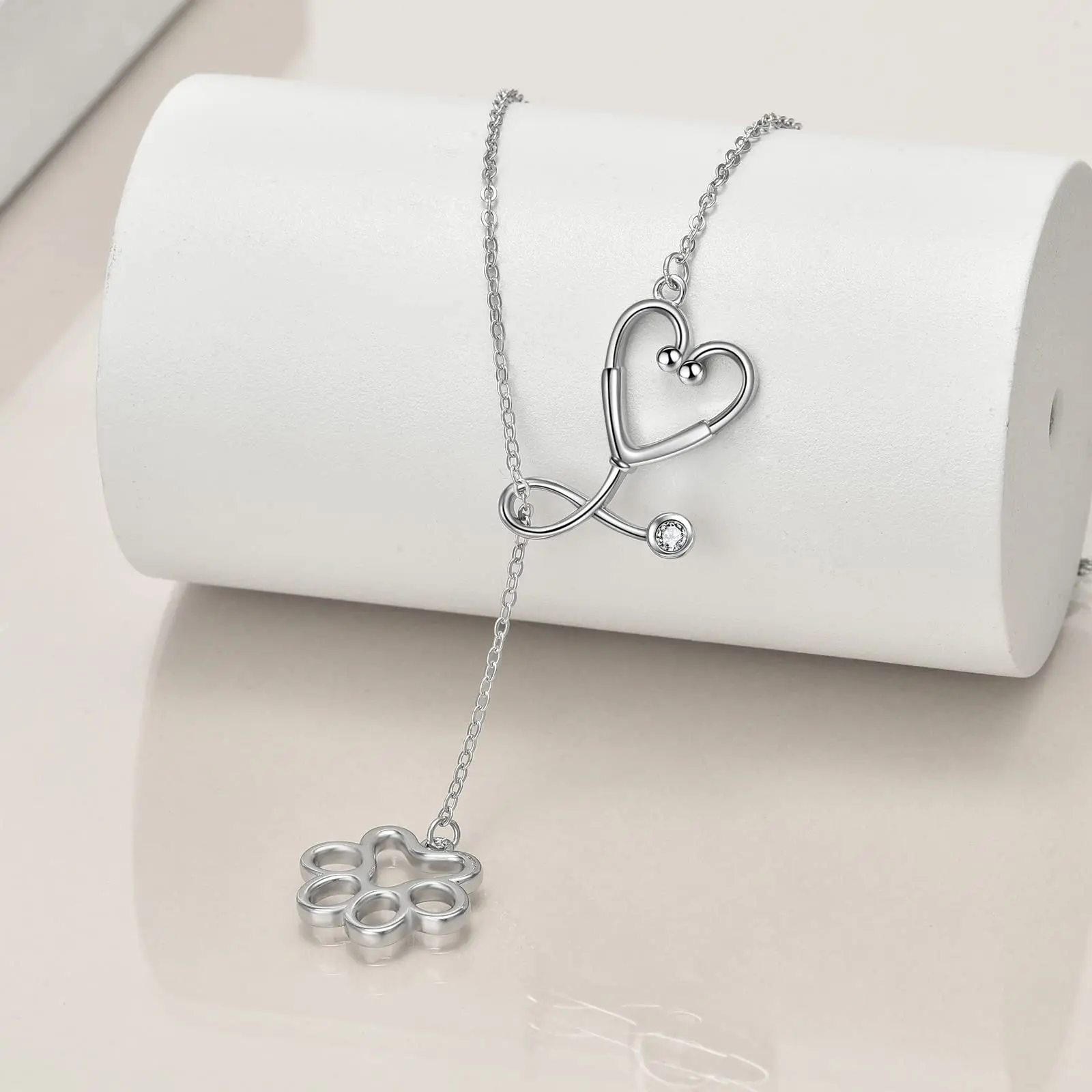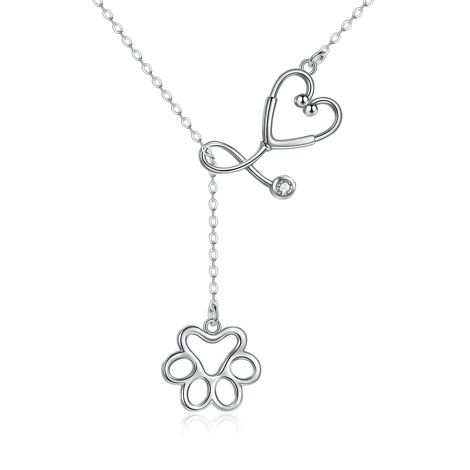 925 Sterling Silver Necklace Paw Print Lariat Stethoscope Nurse Y Necklace Birthday Jewellery For Dog