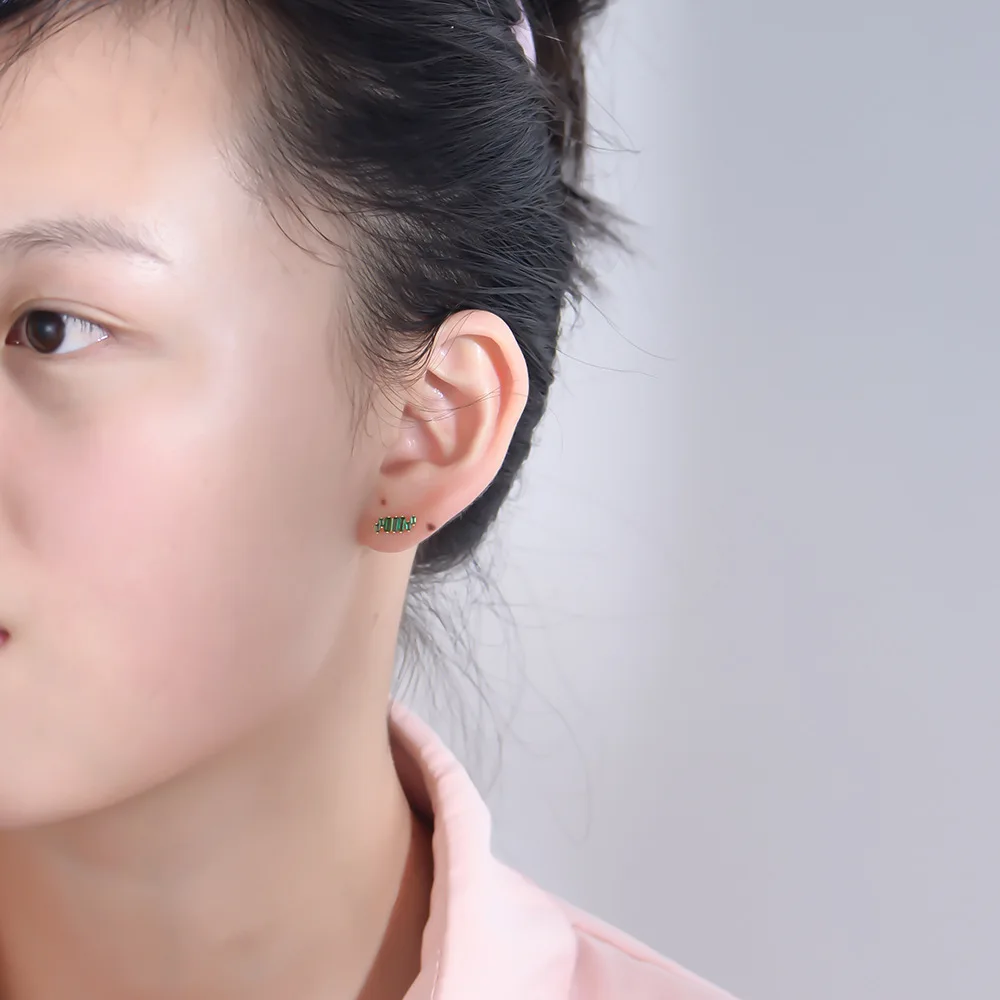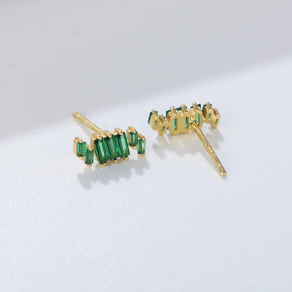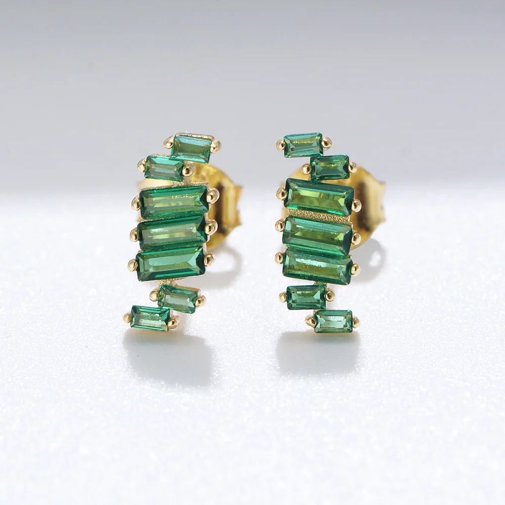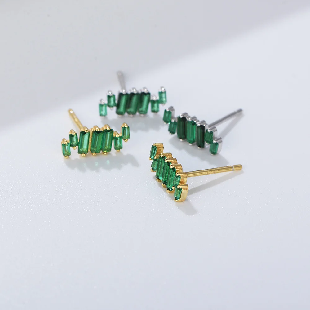 925 Ladder square irregular rectangular green zircon stud earrings for women