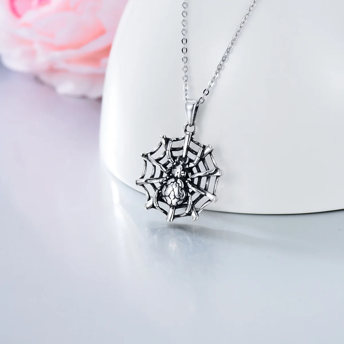 Dainty Animal Jewelry For Women 925 Sterling Silver Oxidized Spider Pendant Necklace