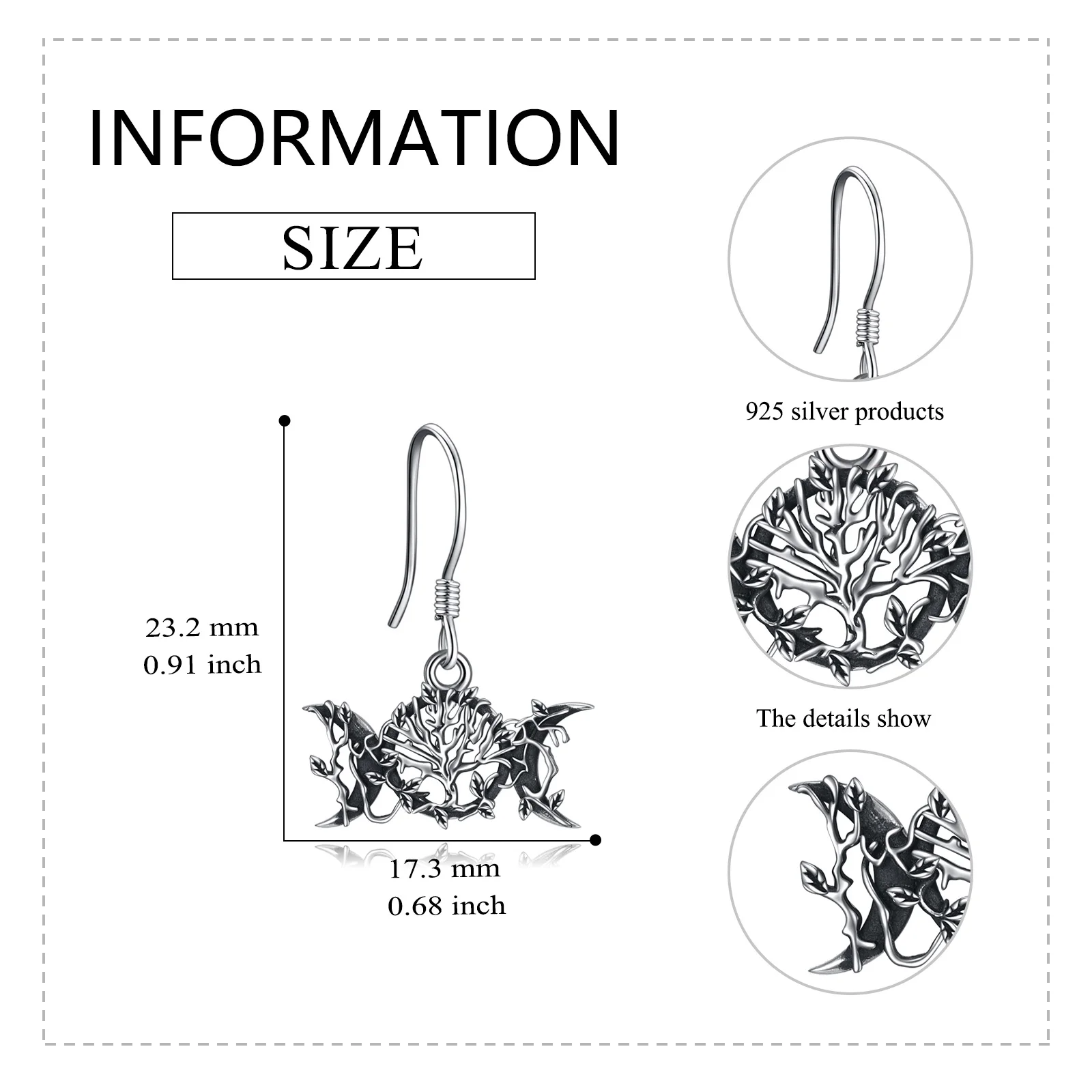 Product name | Triple Moon Goddess Tree Gothic Drop Dangle Earrings |