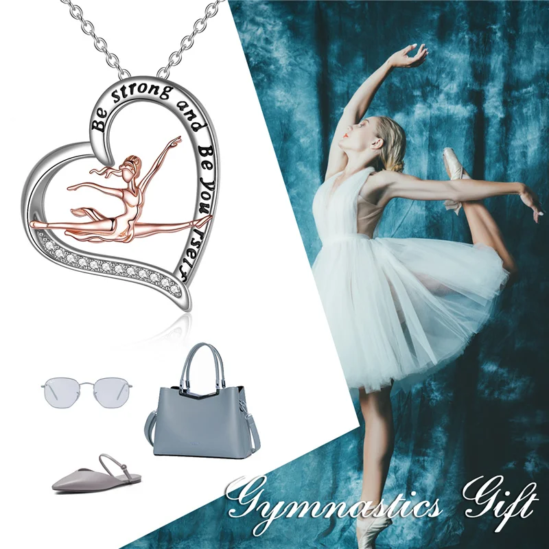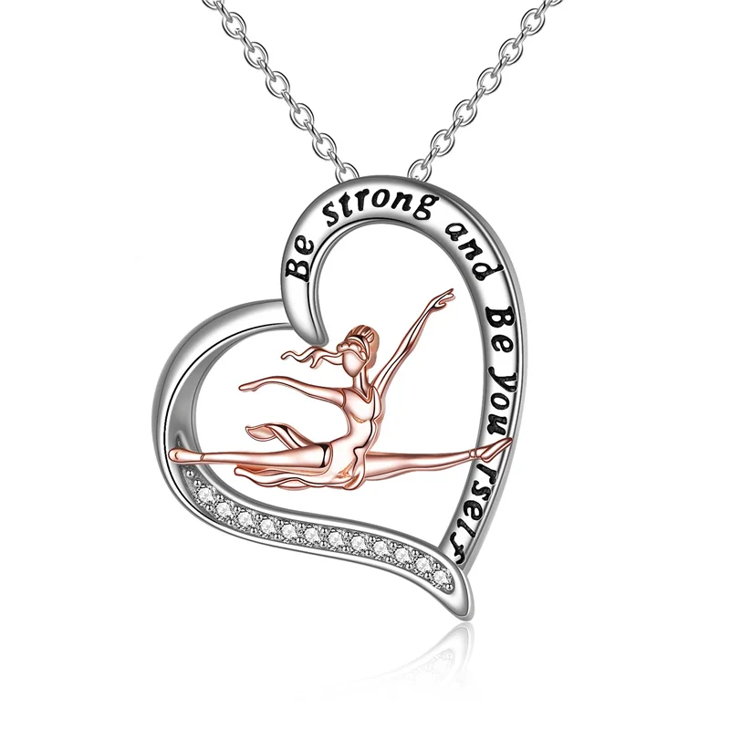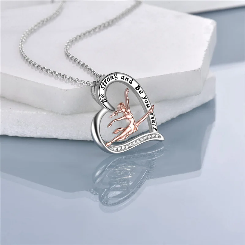 YFN Jewelry 925 Sterling Silver Ballet Dancer Girl Ballerina Two Tone Love Heart Necklace for Women