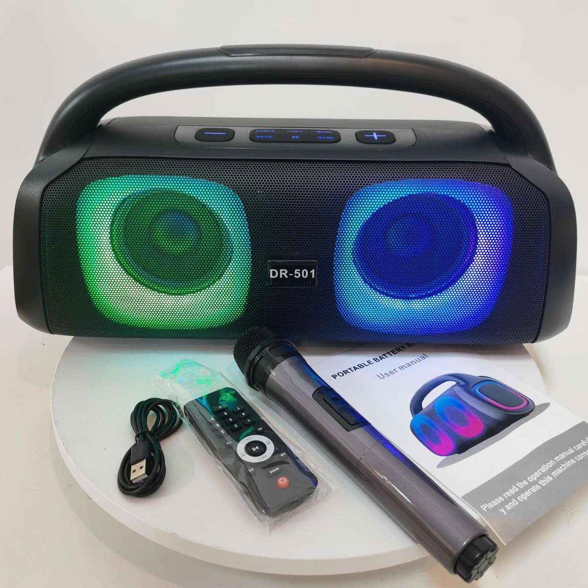 cross-border amazon hot sale factory shipment convenient portable portable with wireless microphone cool rgb lamp
