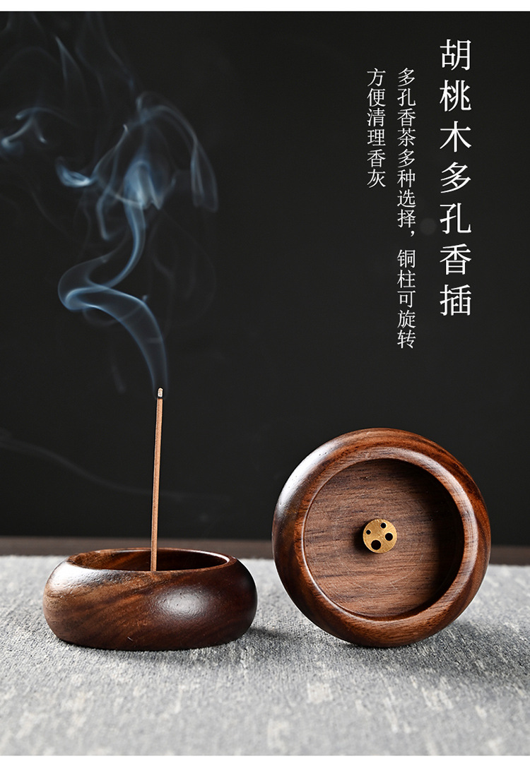 walnut round incense holder