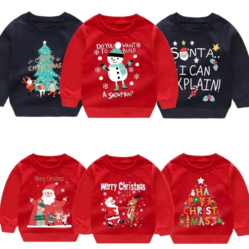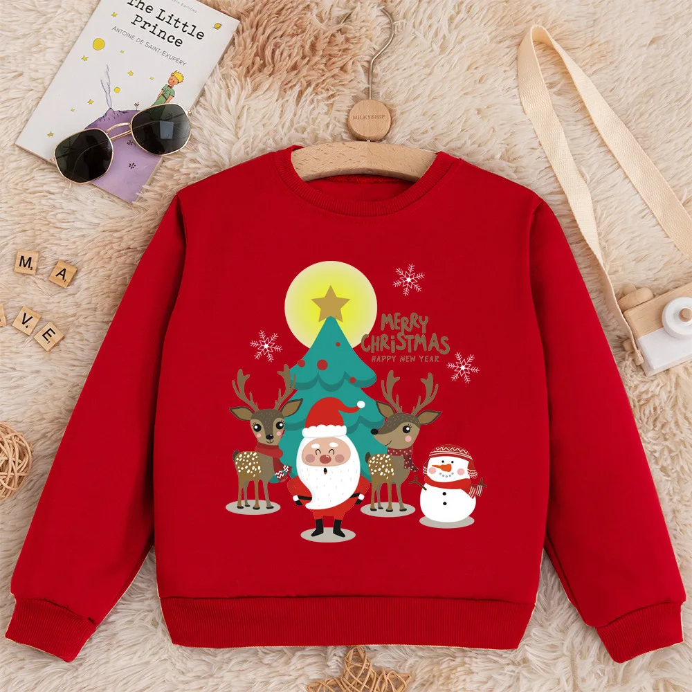 Christmas Children's Wear Girls' Long Sleeve Pullover Cartoon Long Sleeve Round Neck Sweater