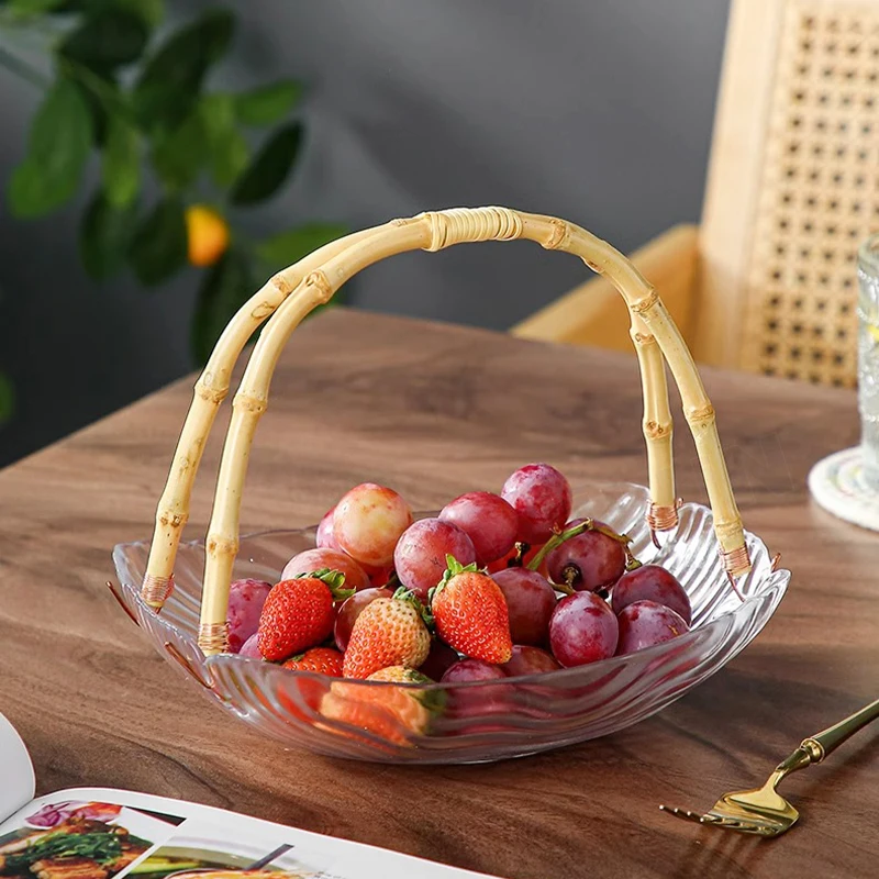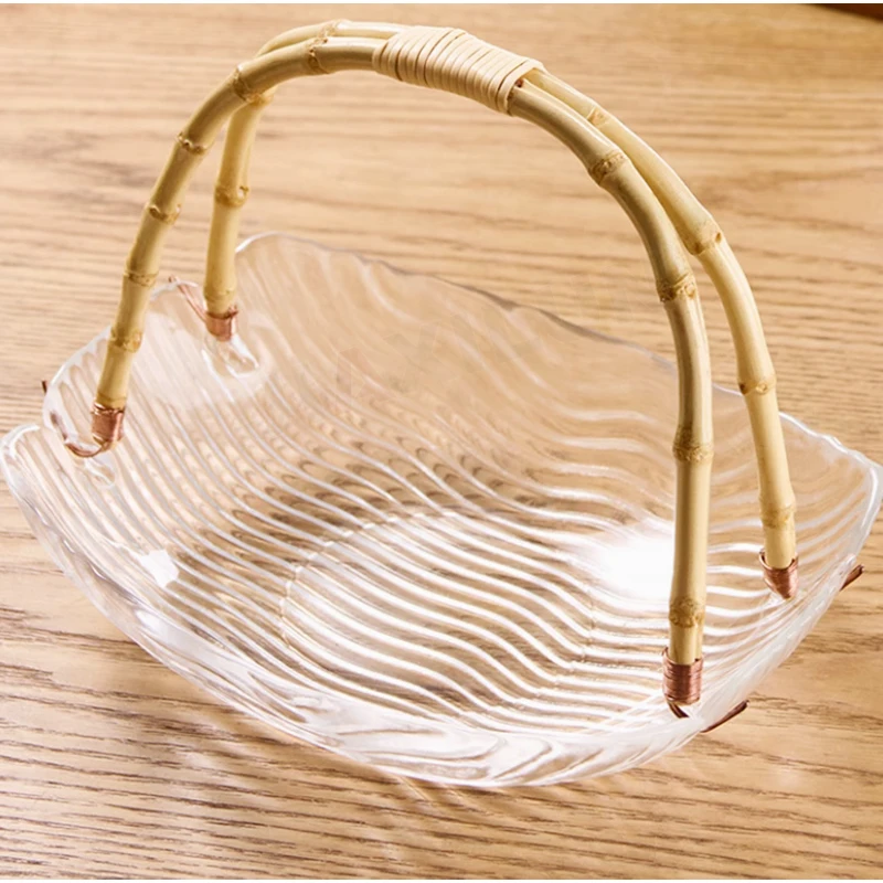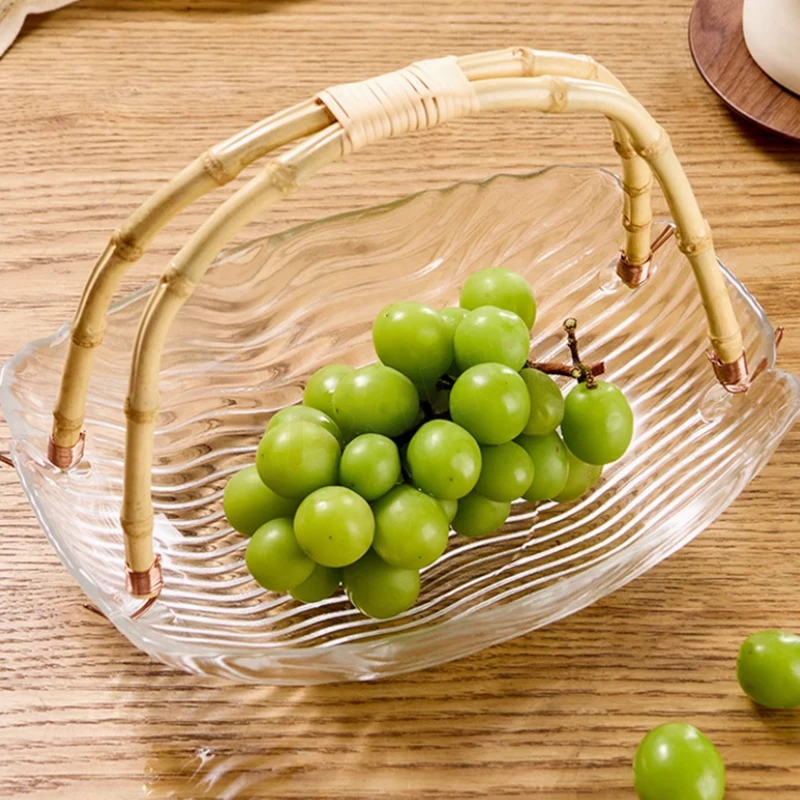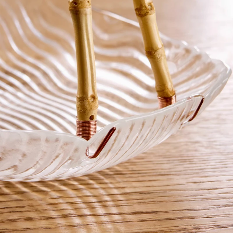 Japanese Elegant round White Glass Fruit Basket Stylish Dessert Cake Tray Holder Patterned Serving Bowl for Dishes and Plates