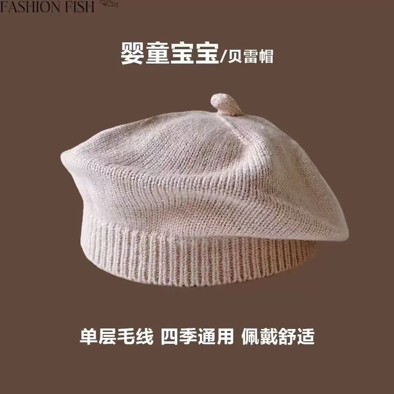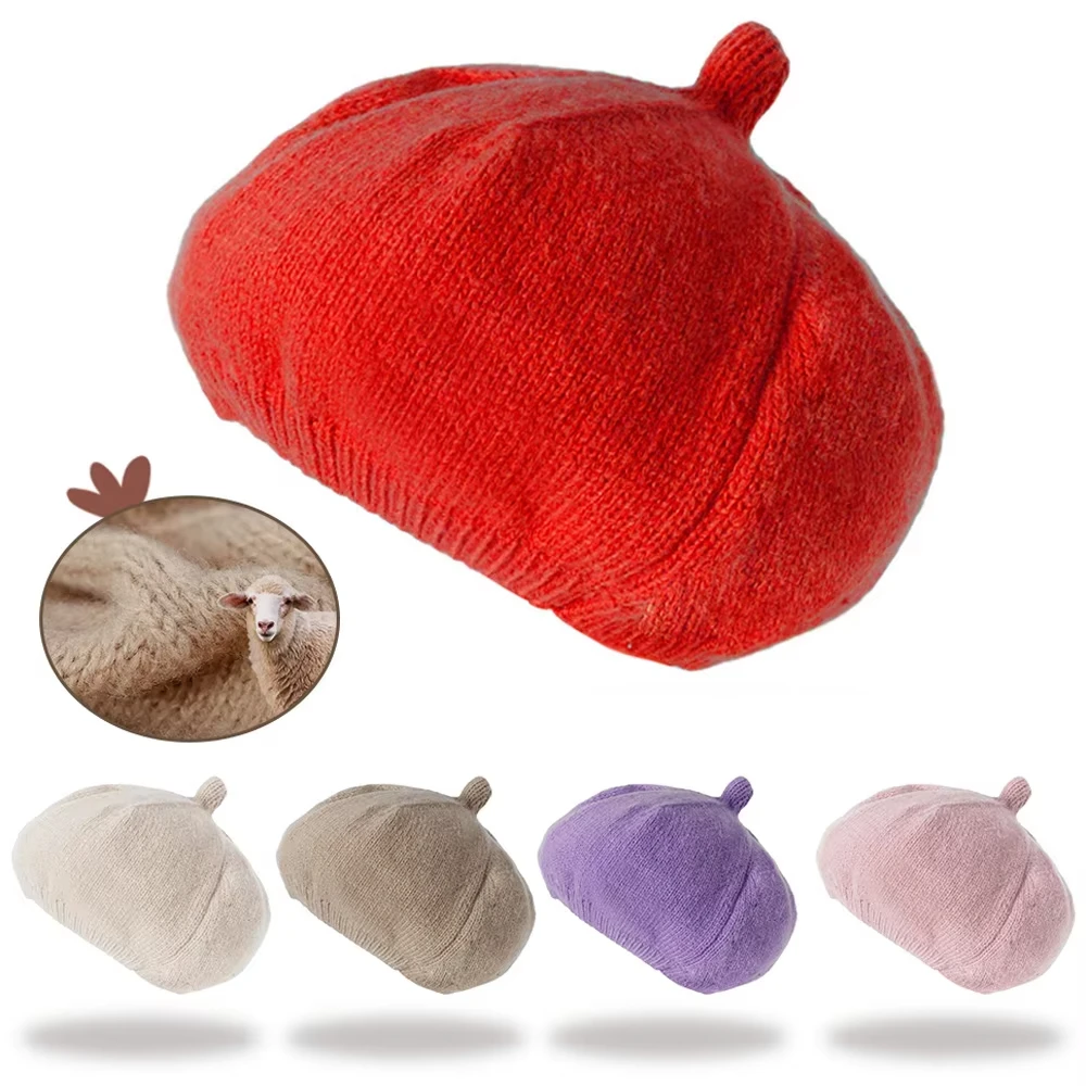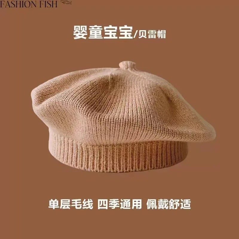 Baby Fashion Versatile Solid Color Soft Beret Kids Vintage Art Knitted Painter Hat Autumn Winter Outdoor Winter Warm Woolen Hats