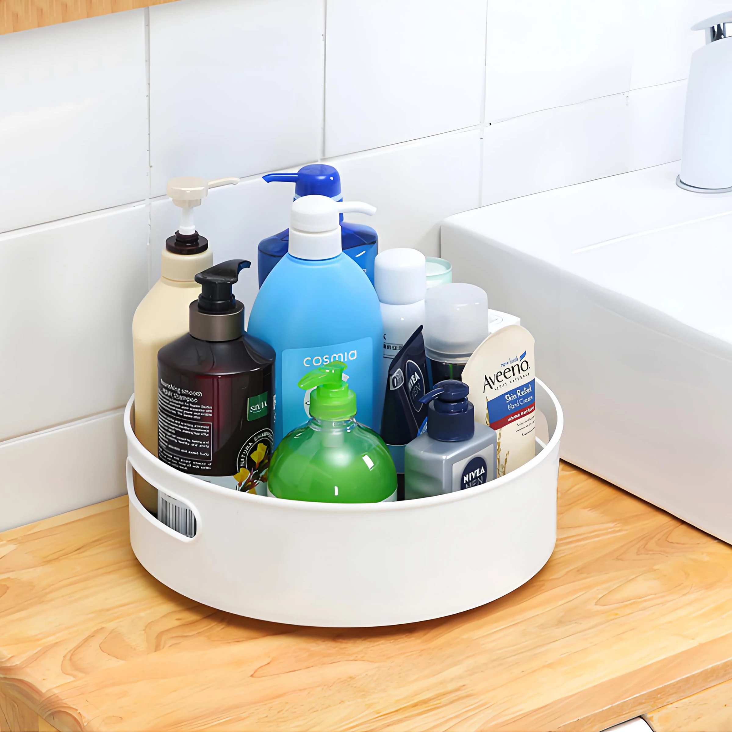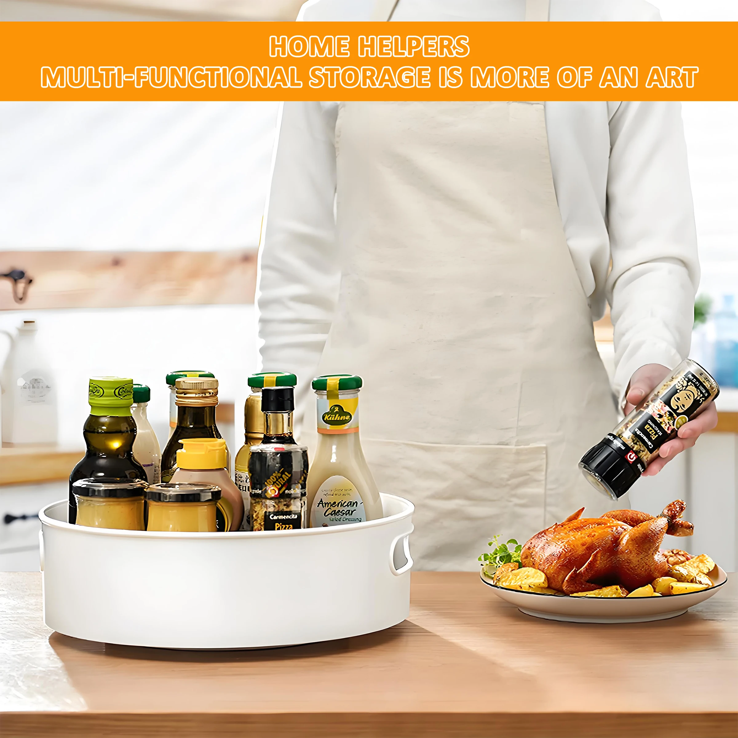 Non-Slip Plastic Lazy Rotating Storage Tray Sideboard Carousel Shelf Countertop Organiser Food Storage Countertop Storage