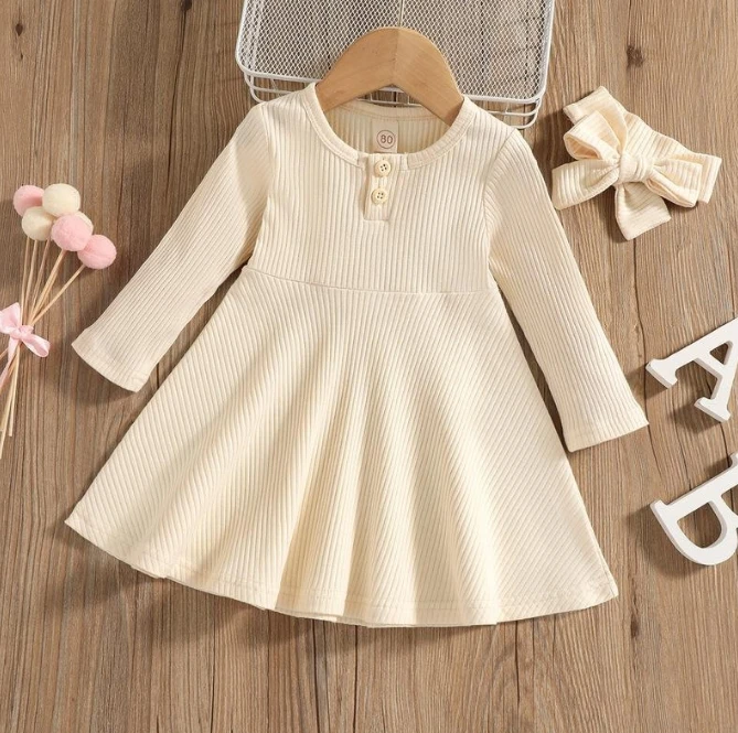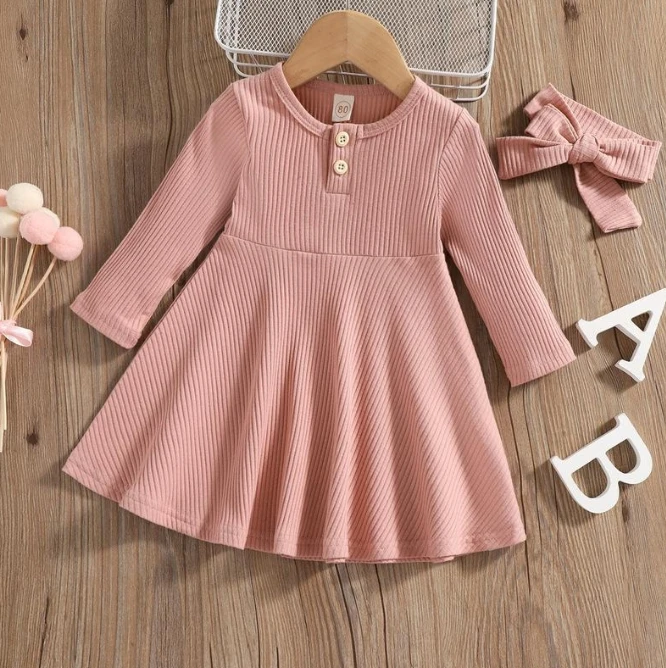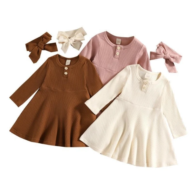 Spring And Autumn Solid Color Girl Dress Pit Strip Round Neck Long Sleeve Autumn Dress For Girls Girls Dresses