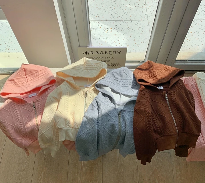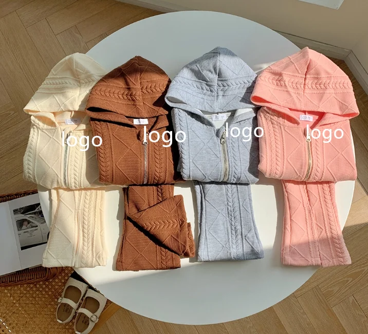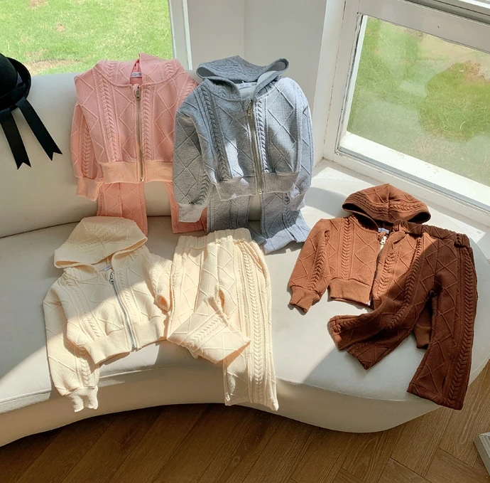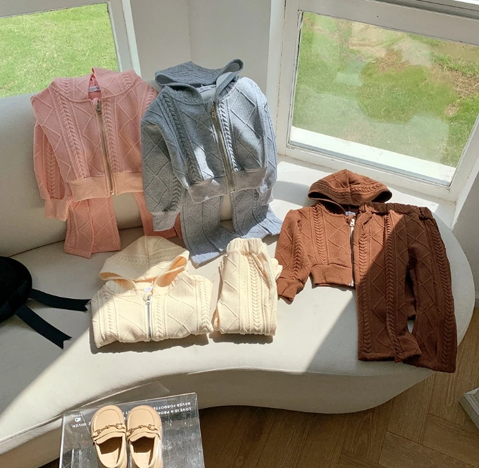 Spring Autumn Kids Clothing Two-piece Girls Casual Sweater Suit Children's Versatile Hooded Knitted Jacket Wide Leg Pants Set